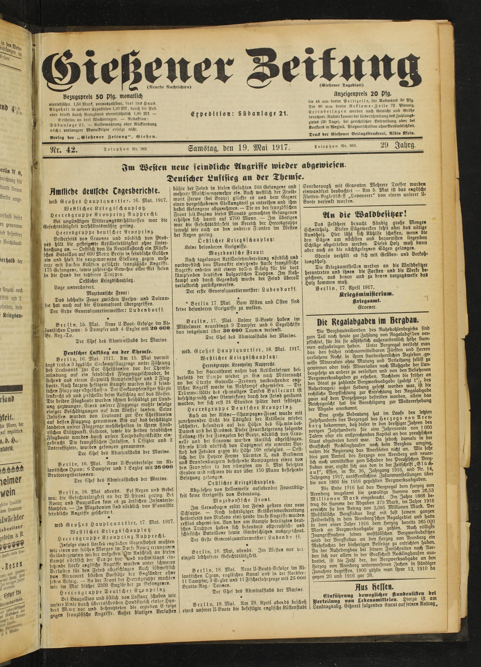 Gießener Zeitung. 1914-1918