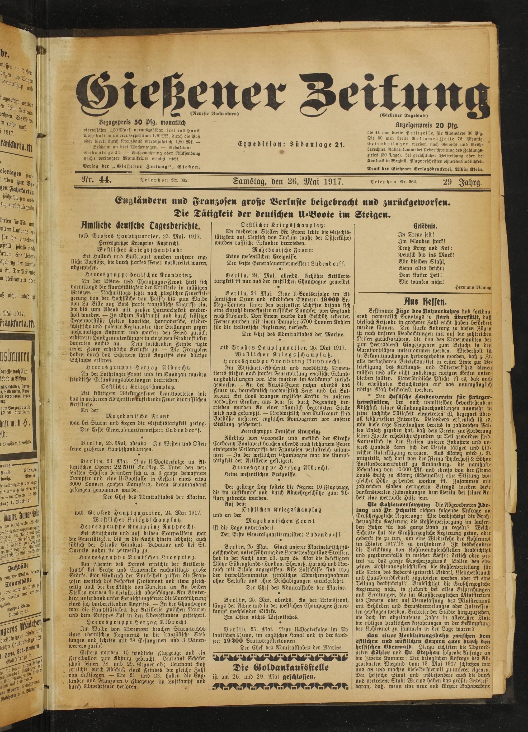 Gießener Zeitung. 1914-1918