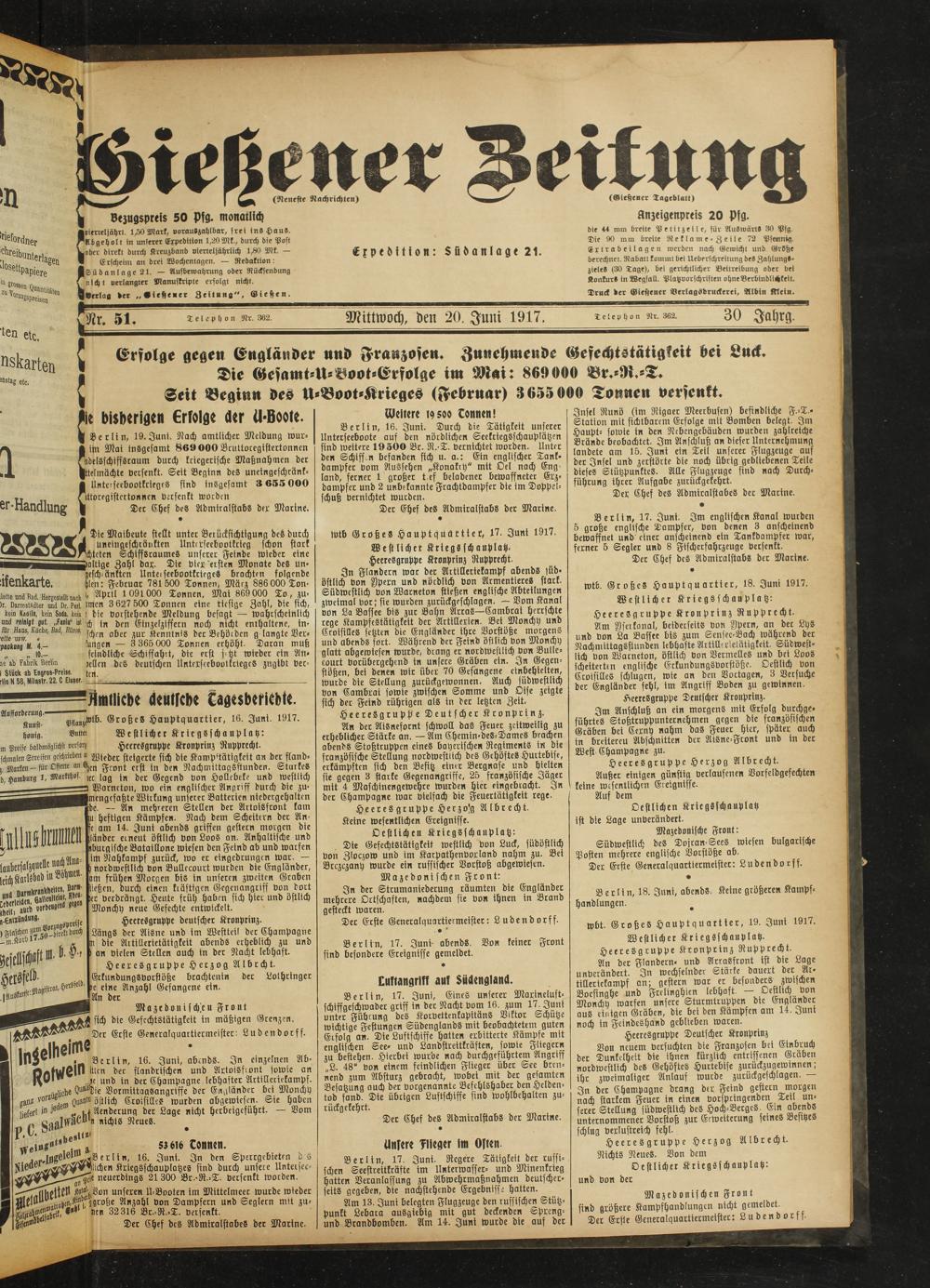 Gießener Zeitung. 1914-1918