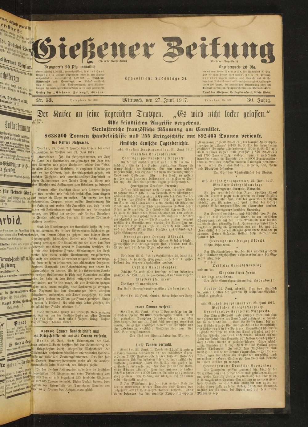 Gießener Zeitung. 1914-1918