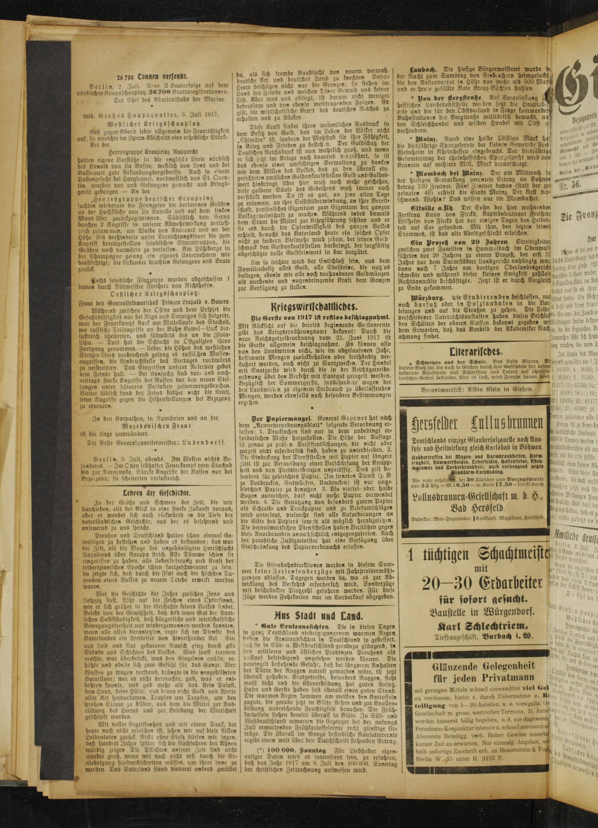 Gießener Zeitung. 1914-1918