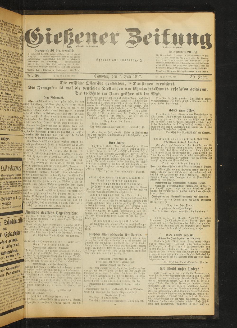 Gießener Zeitung. 1914-1918