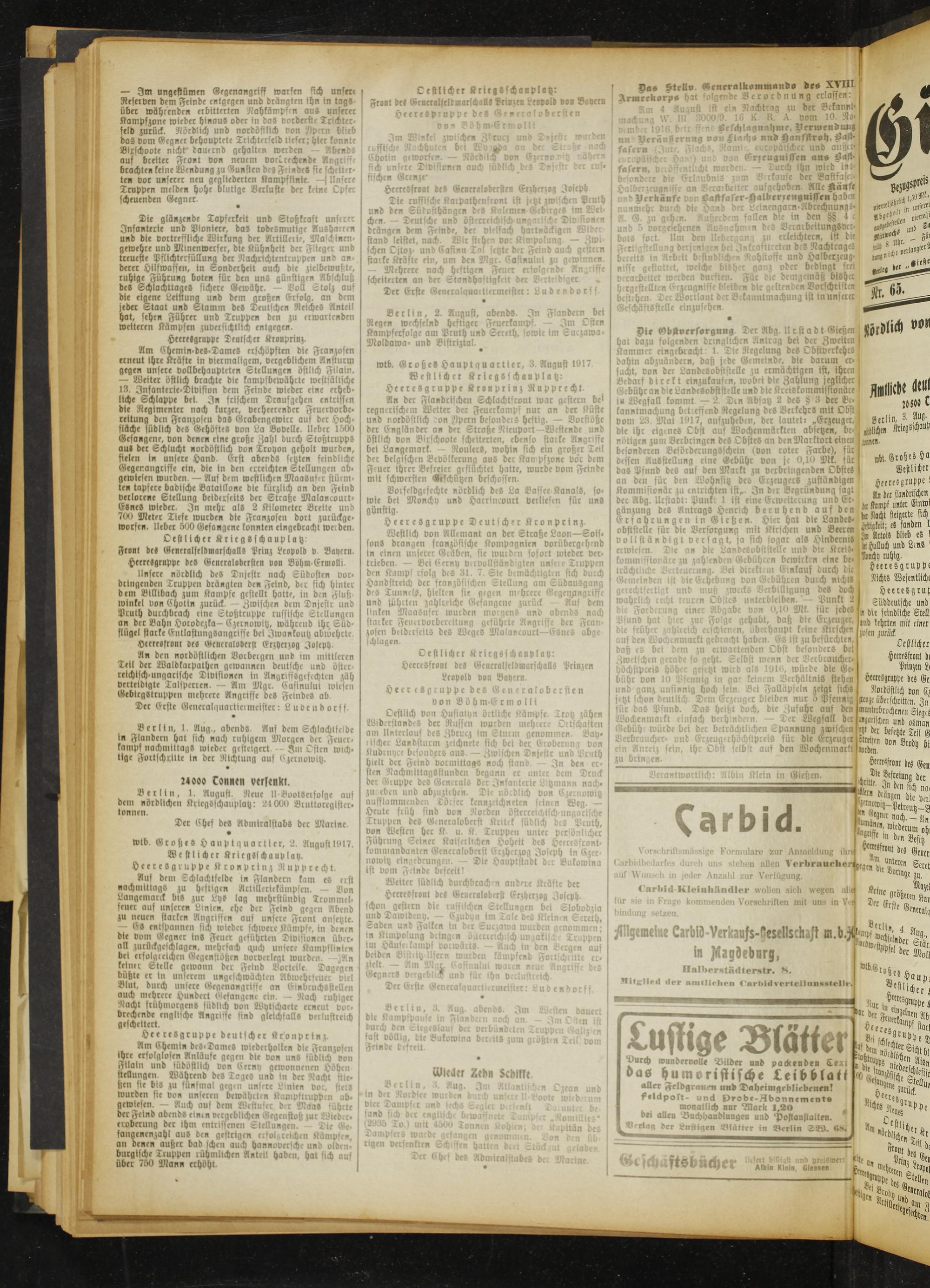 Gießener Zeitung. 1914-1918