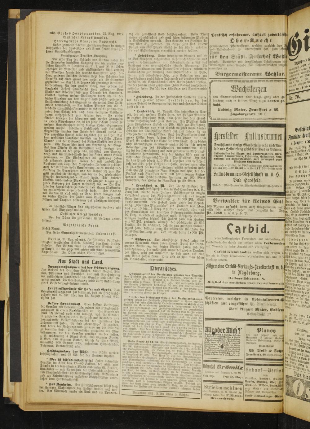 Gießener Zeitung. 1914-1918