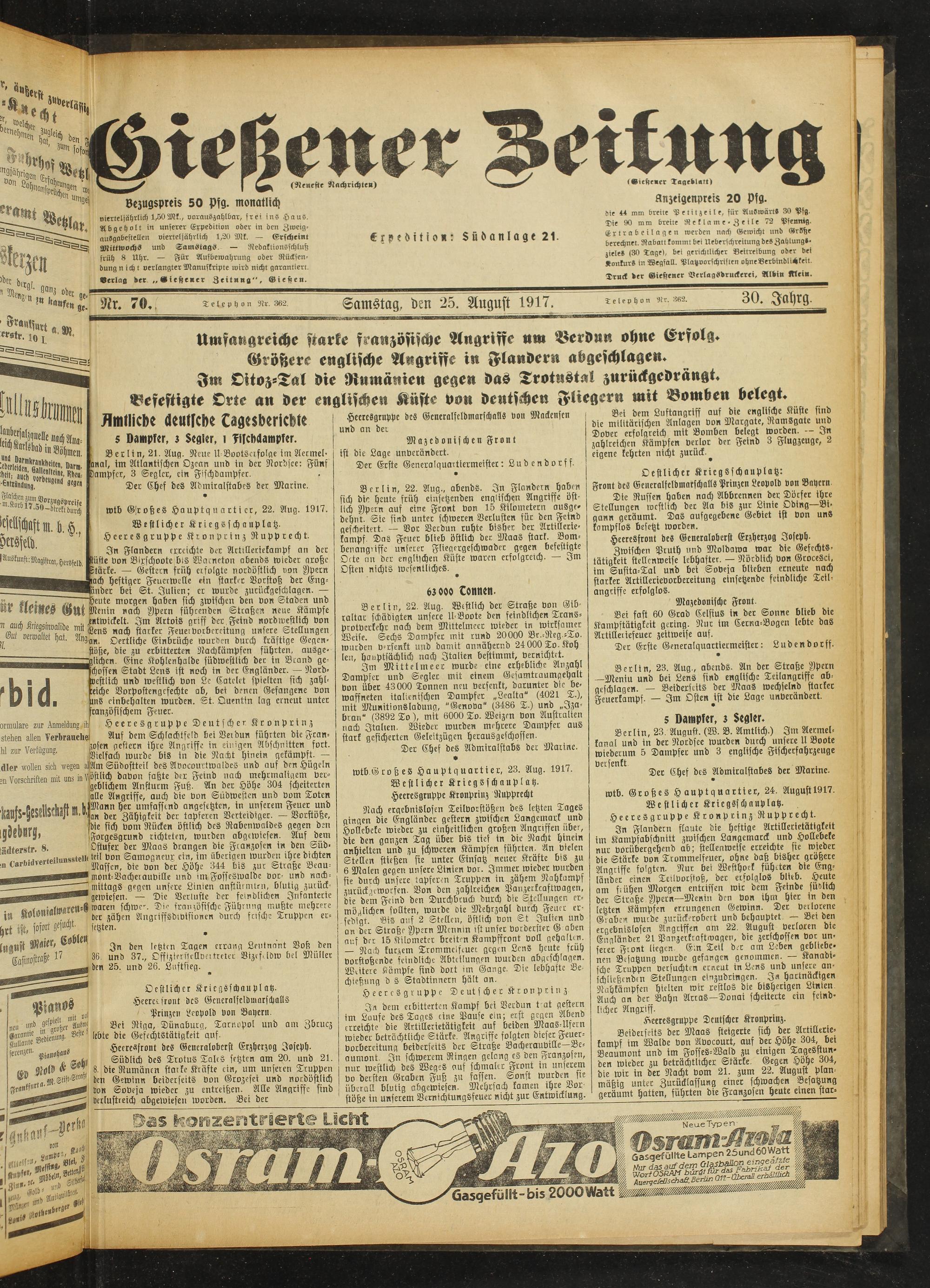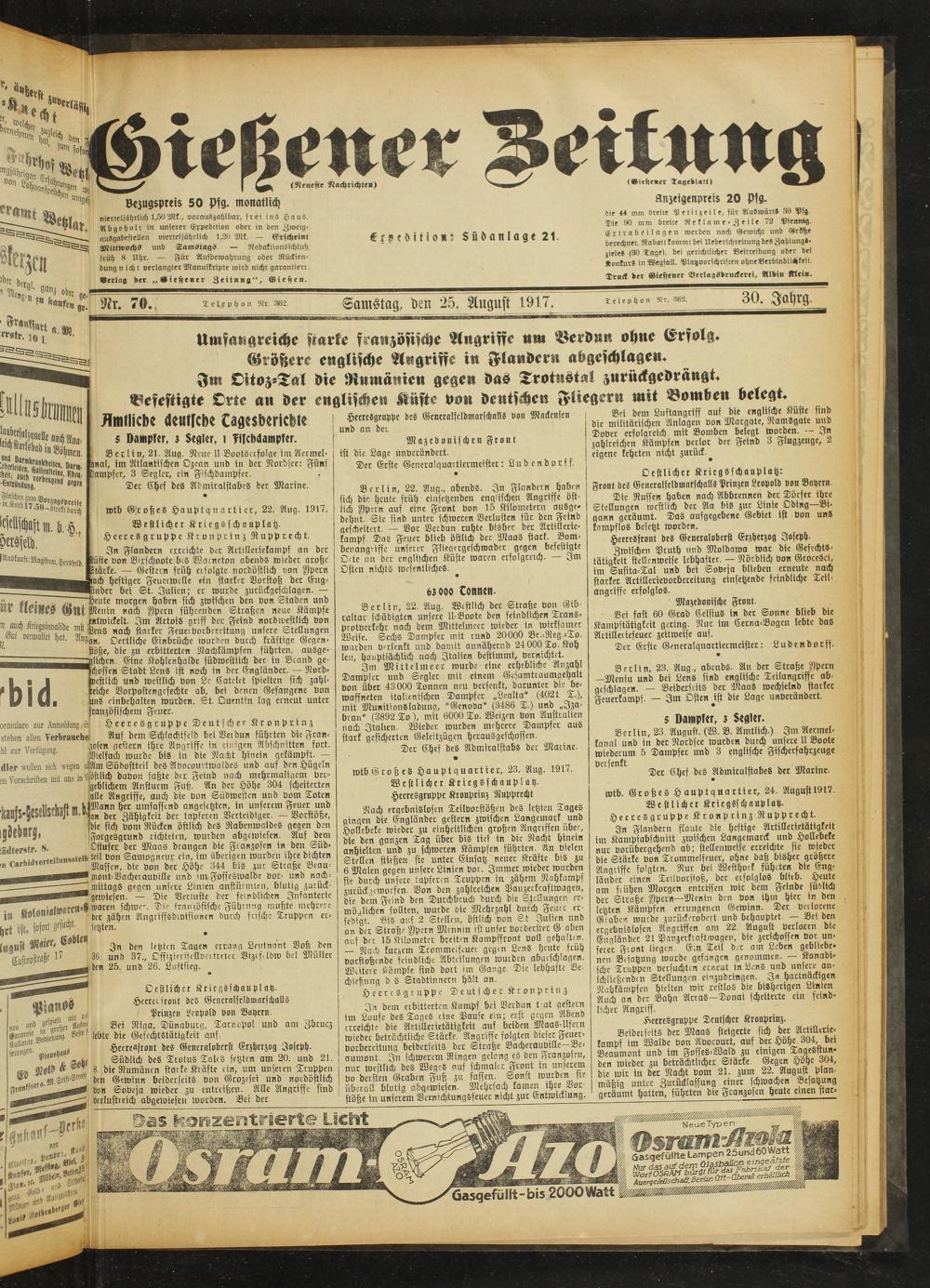 Gießener Zeitung. 1914-1918