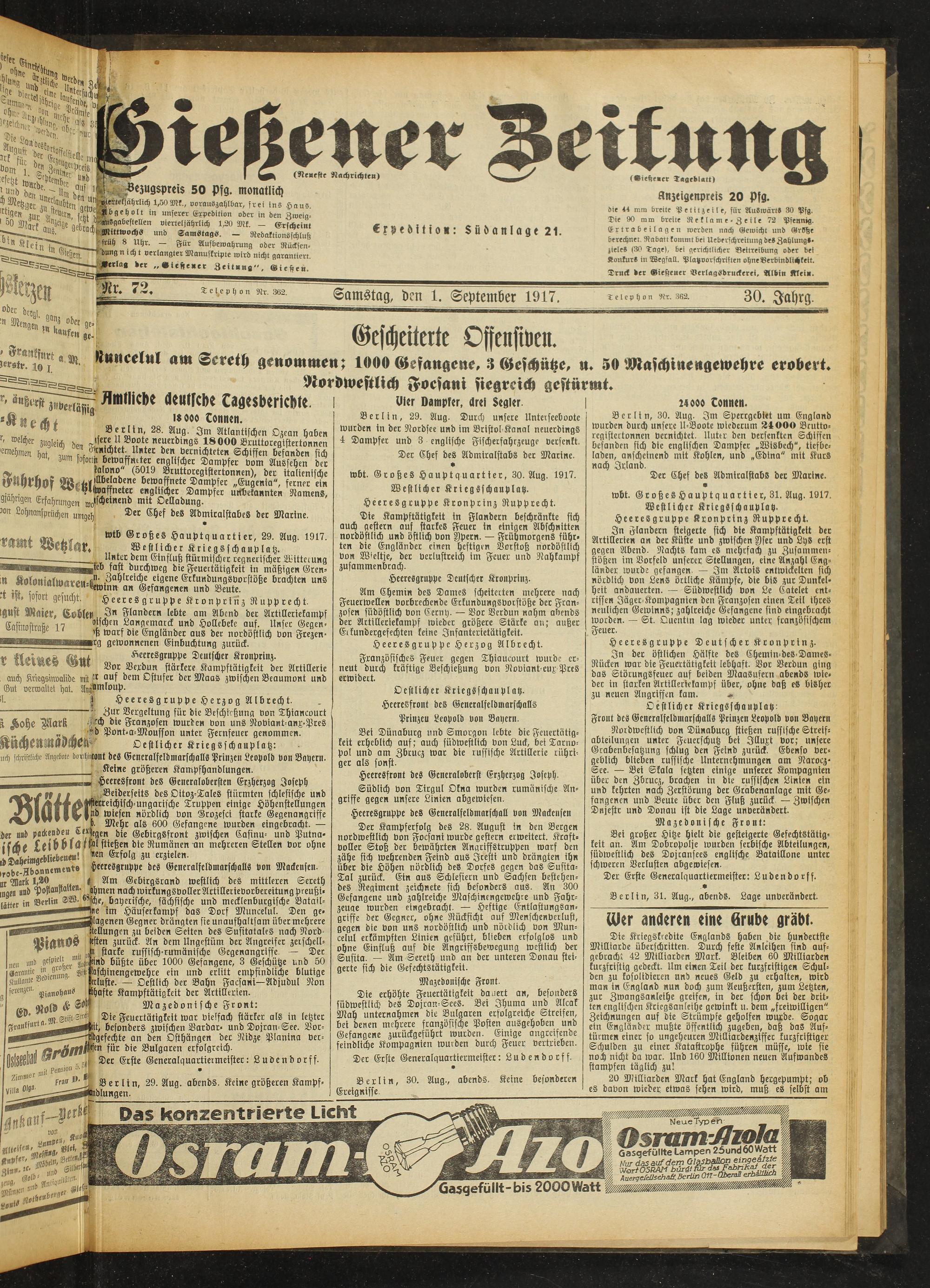 Gießener Zeitung. 1914-1918