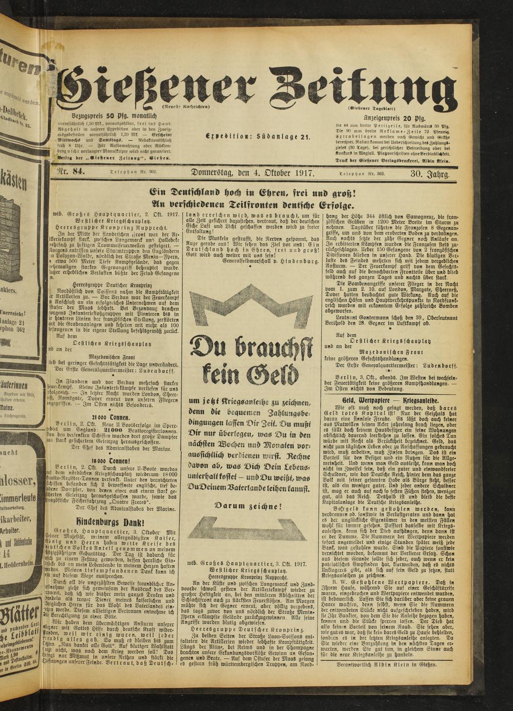 Gießener Zeitung. 1914-1918
