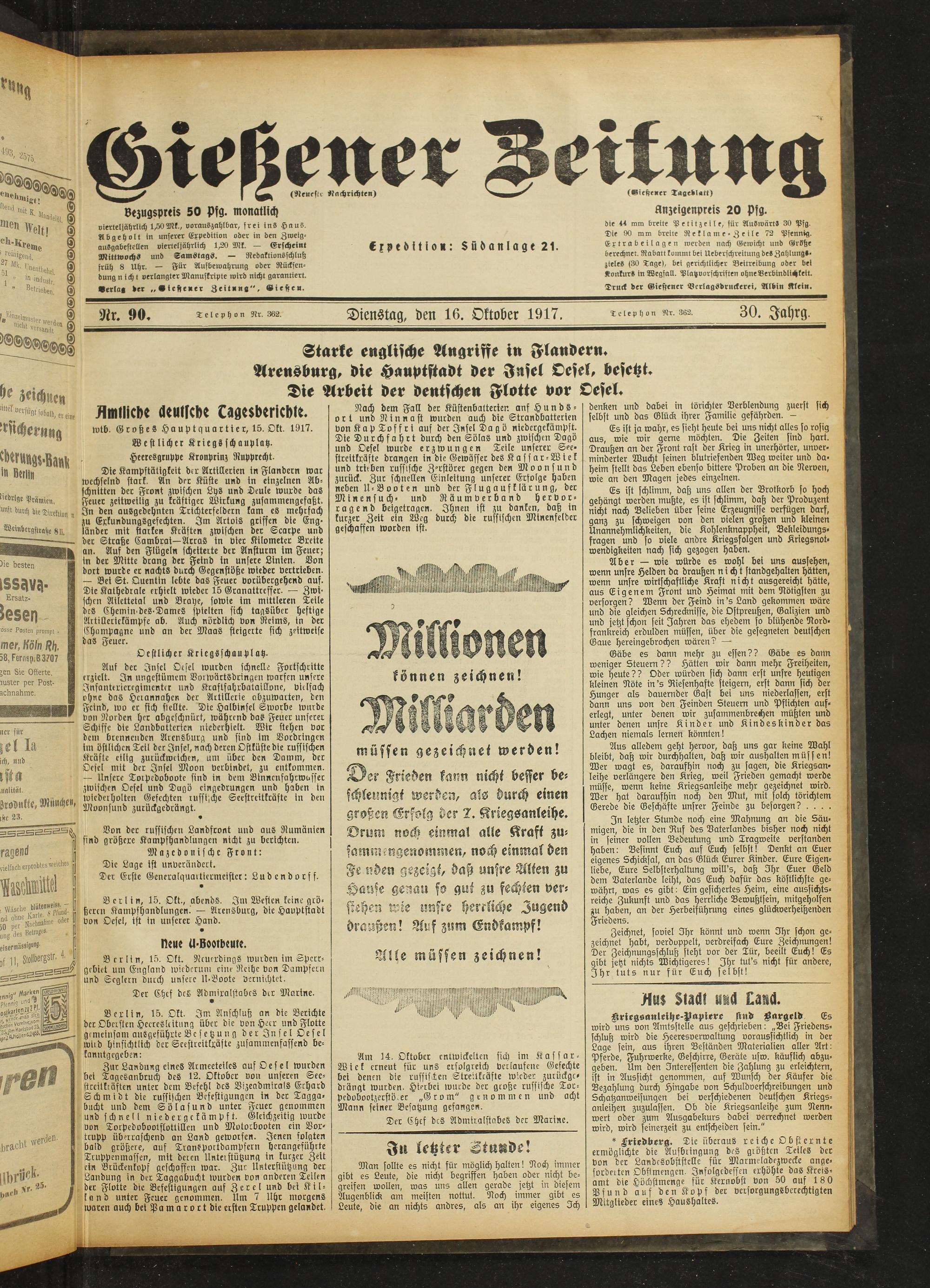 Gießener Zeitung. 1914-1918