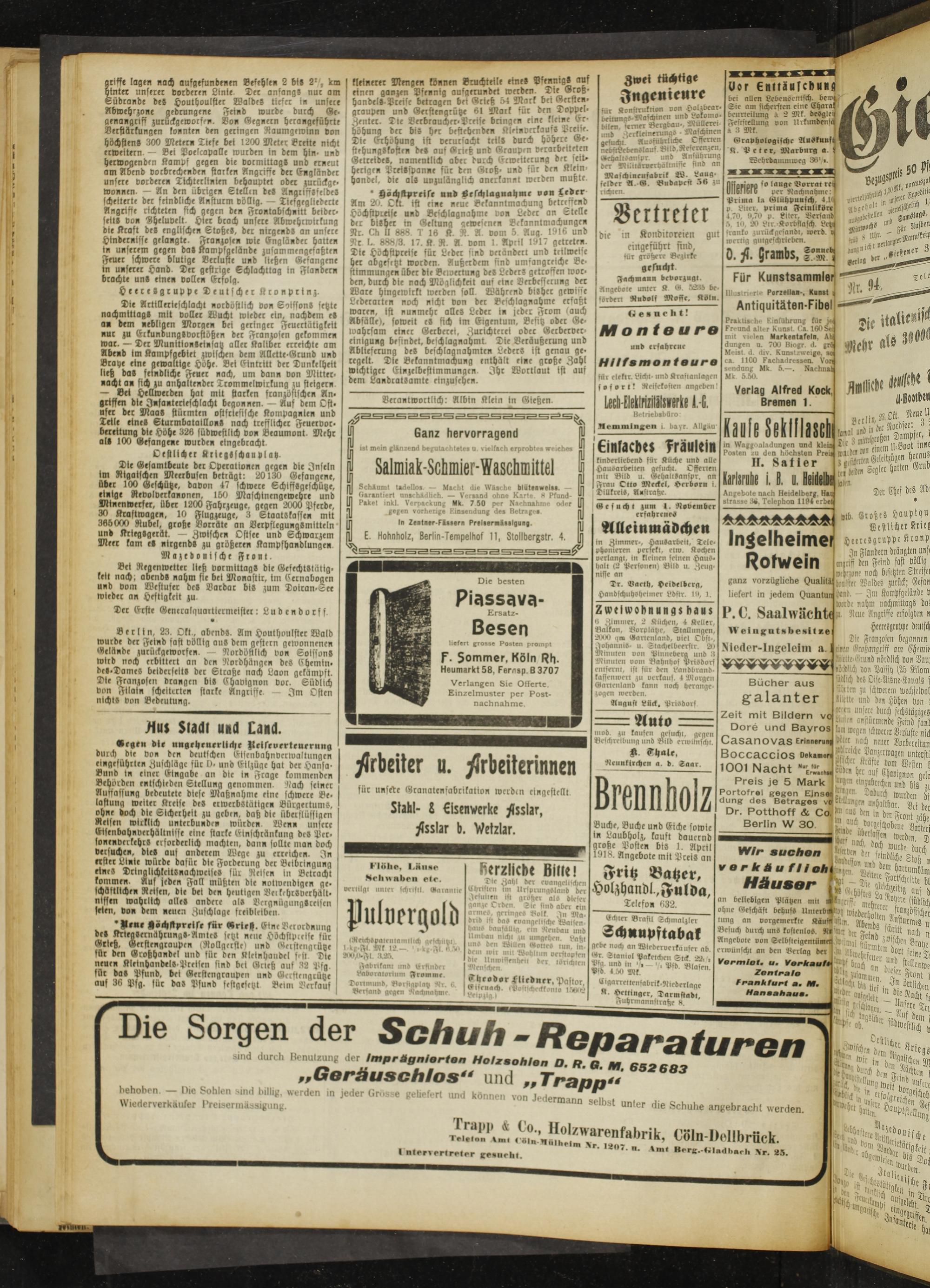 Gießener Zeitung. 1914-1918