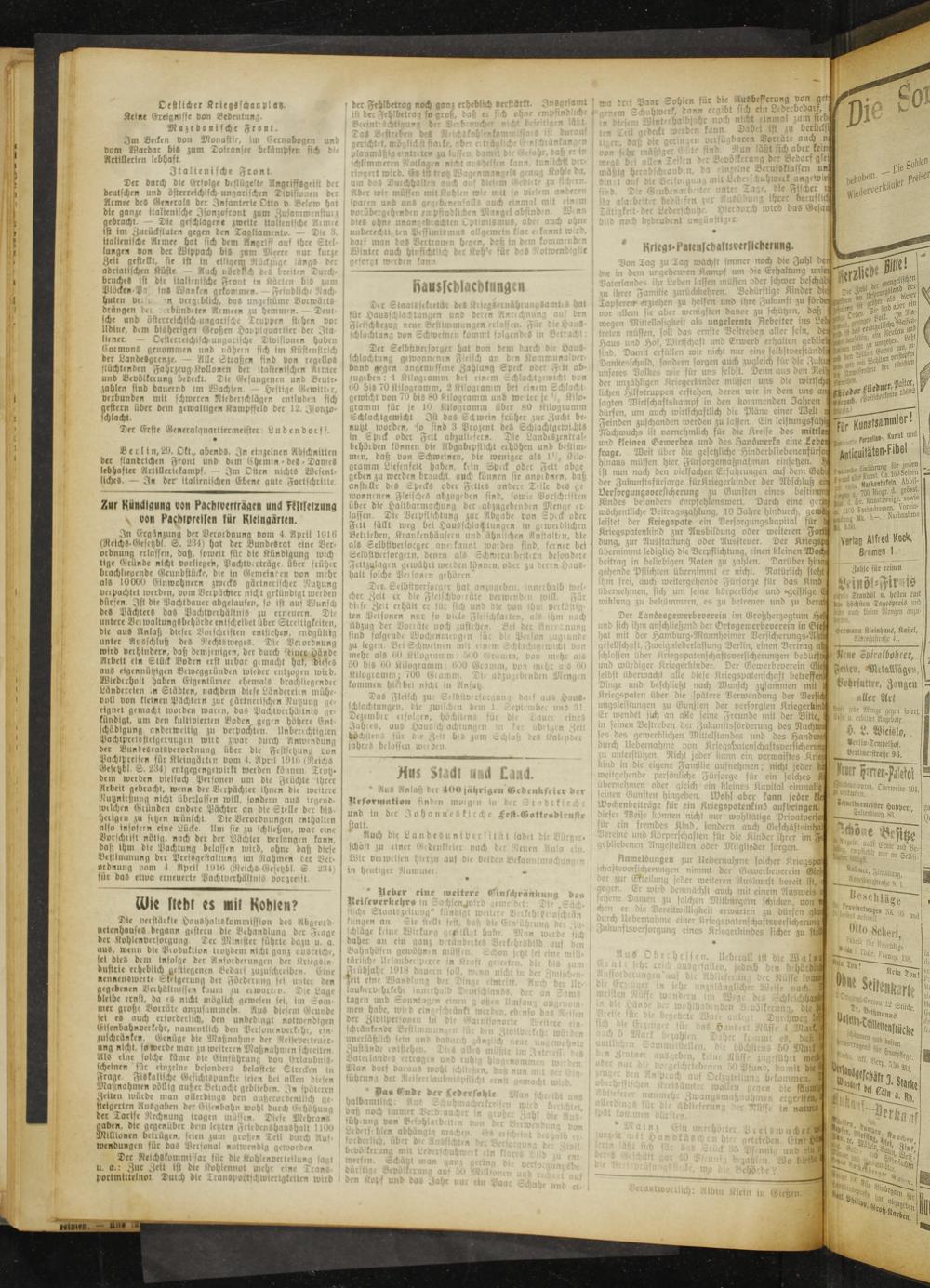 Gießener Zeitung. 1914-1918
