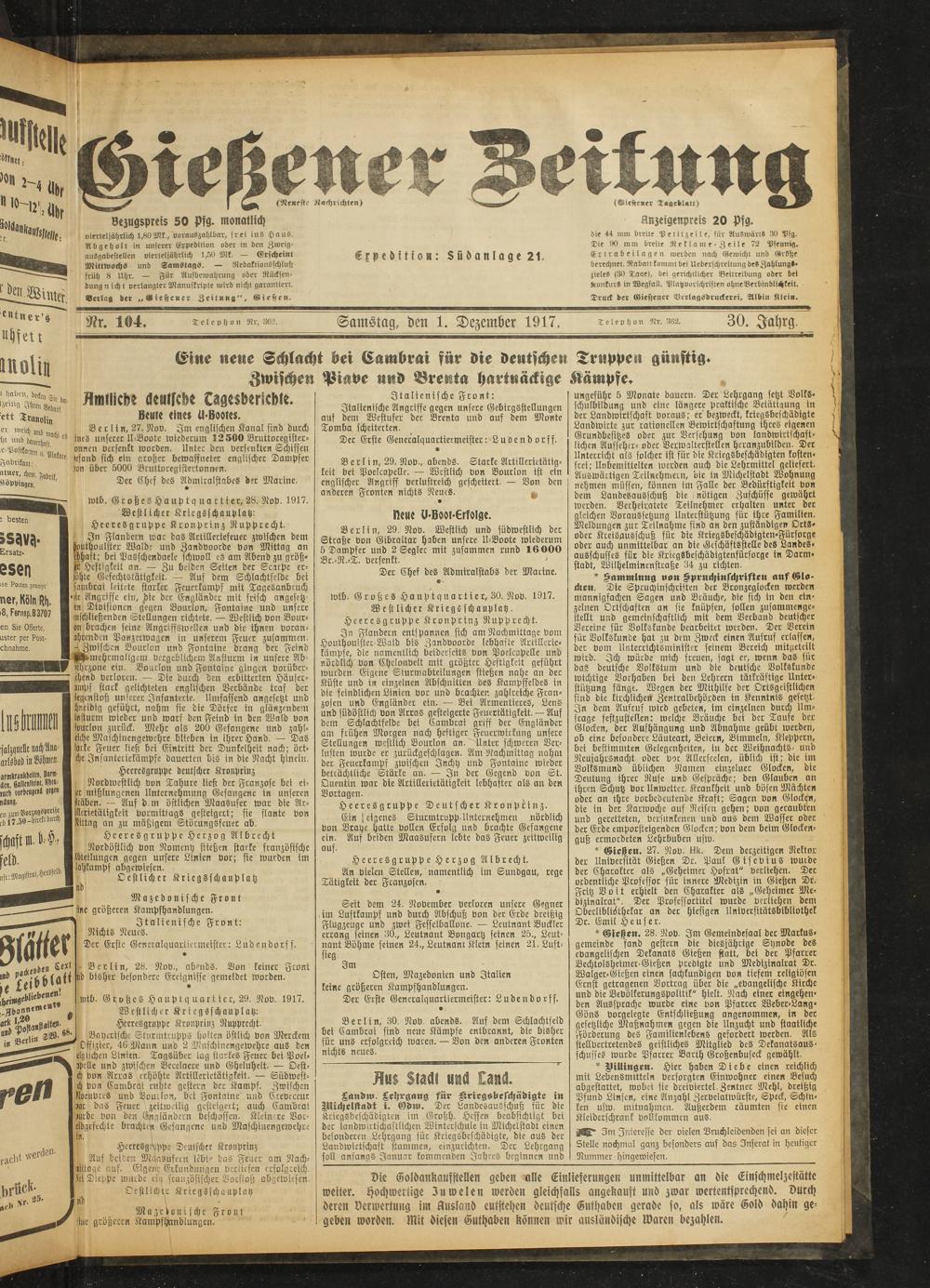 Gießener Zeitung. 1914-1918