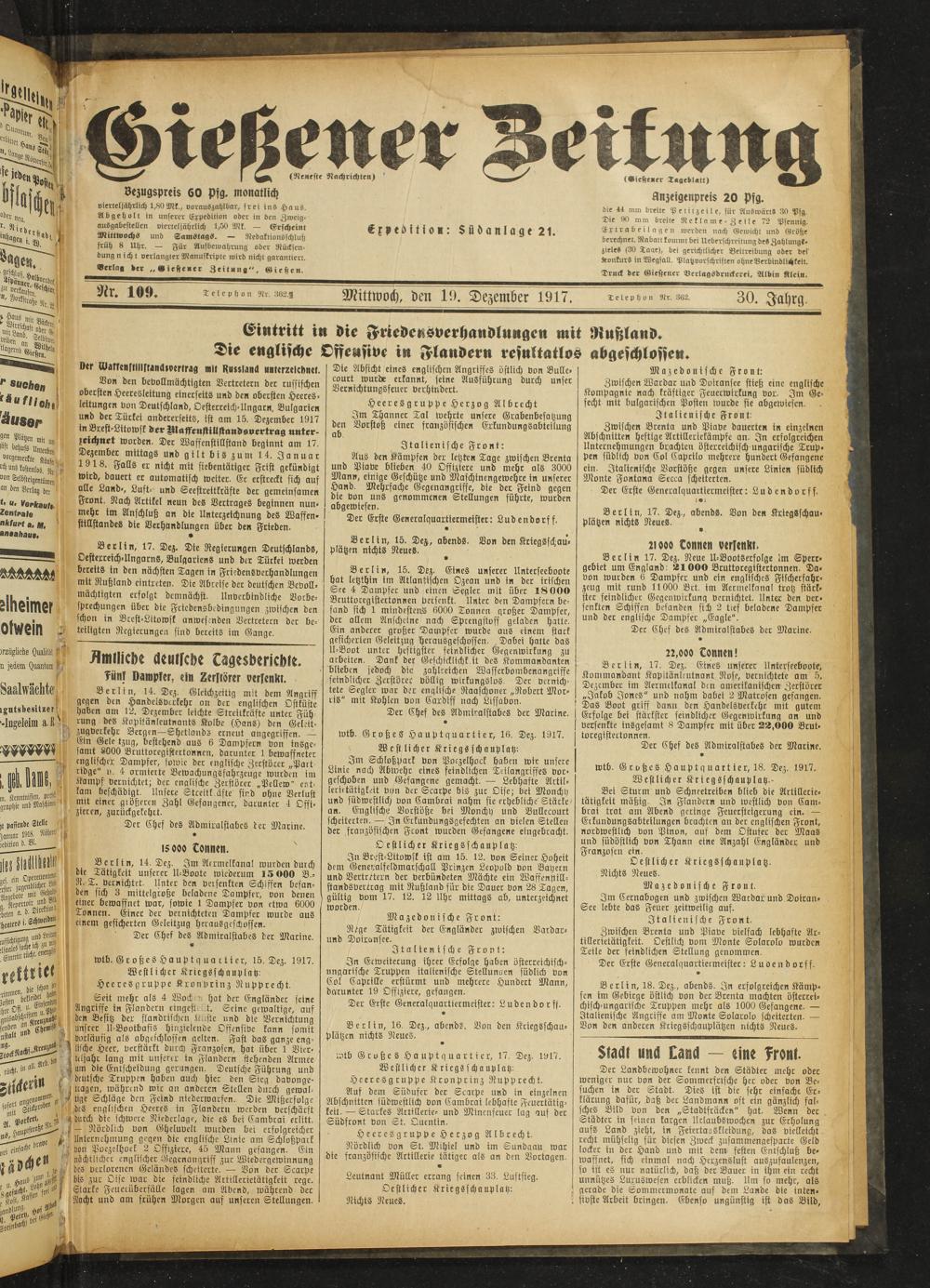 Gießener Zeitung. 1914-1918