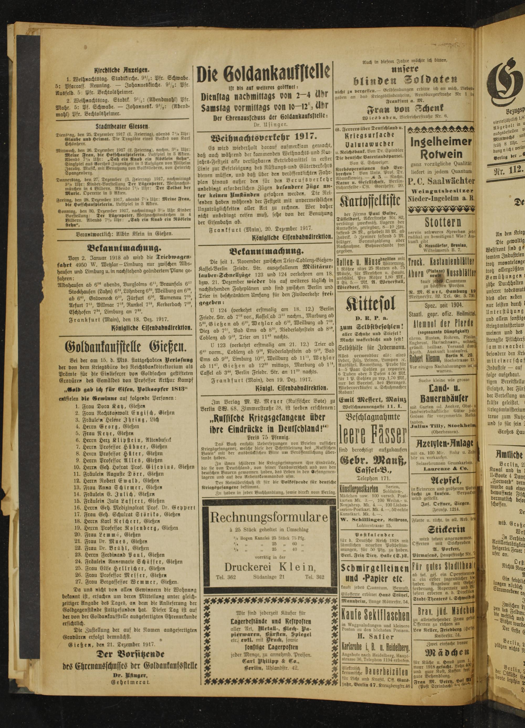 Gießener Zeitung. 1914-1918