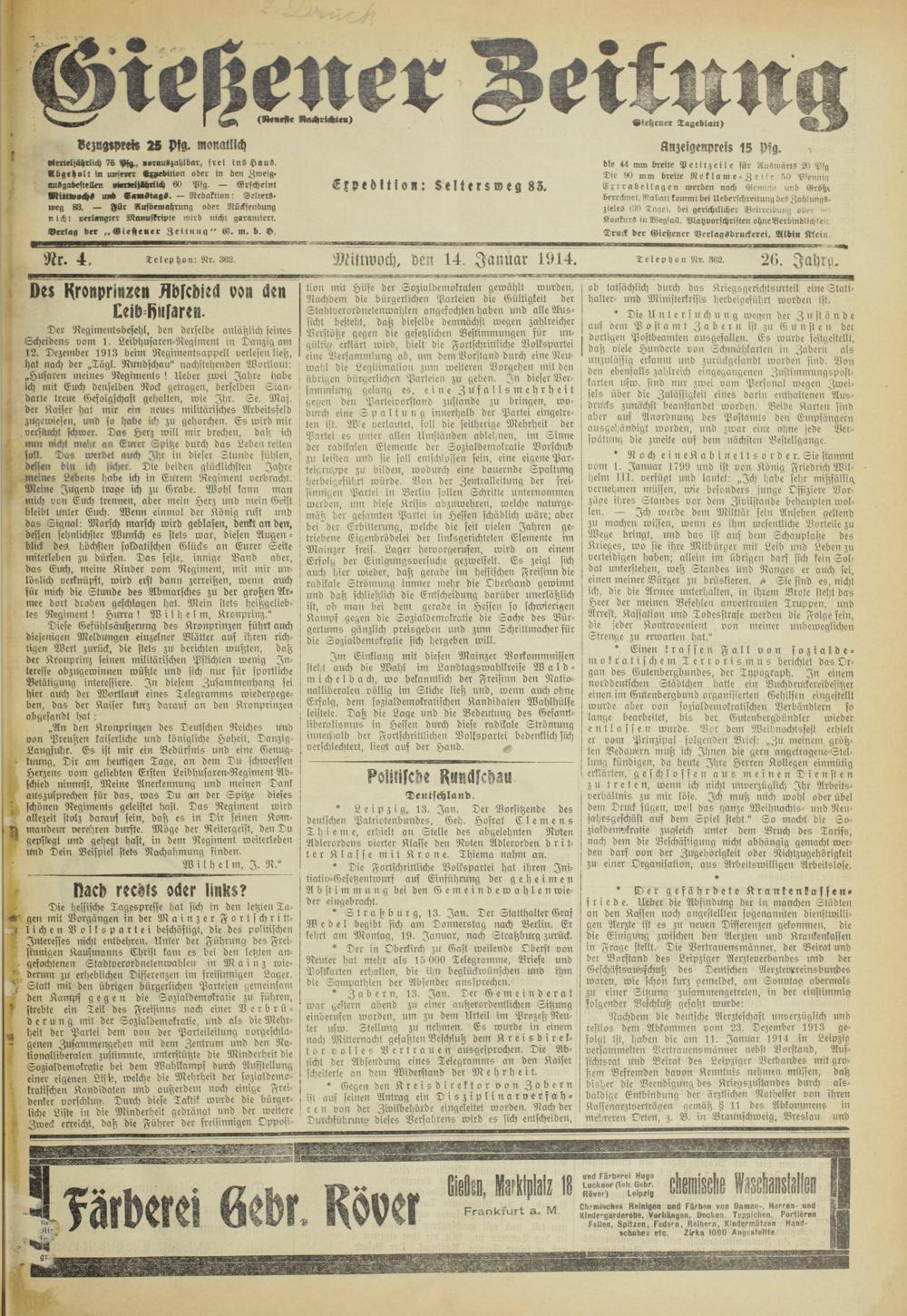 Gießener Zeitung. 1914-1918