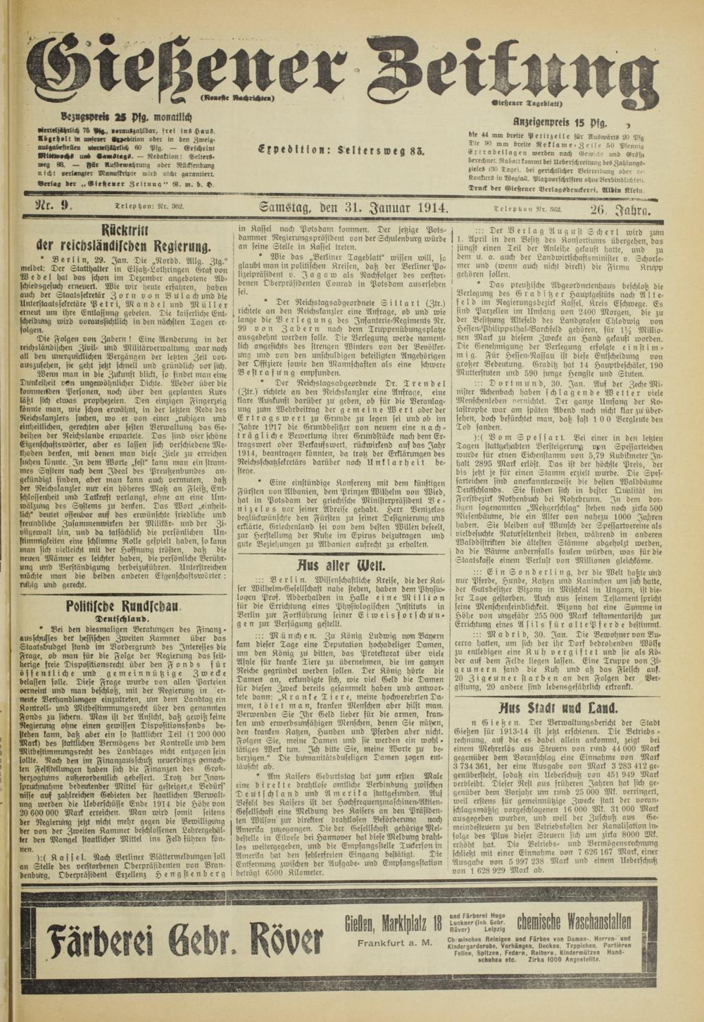 Gießener Zeitung. 1914-1918