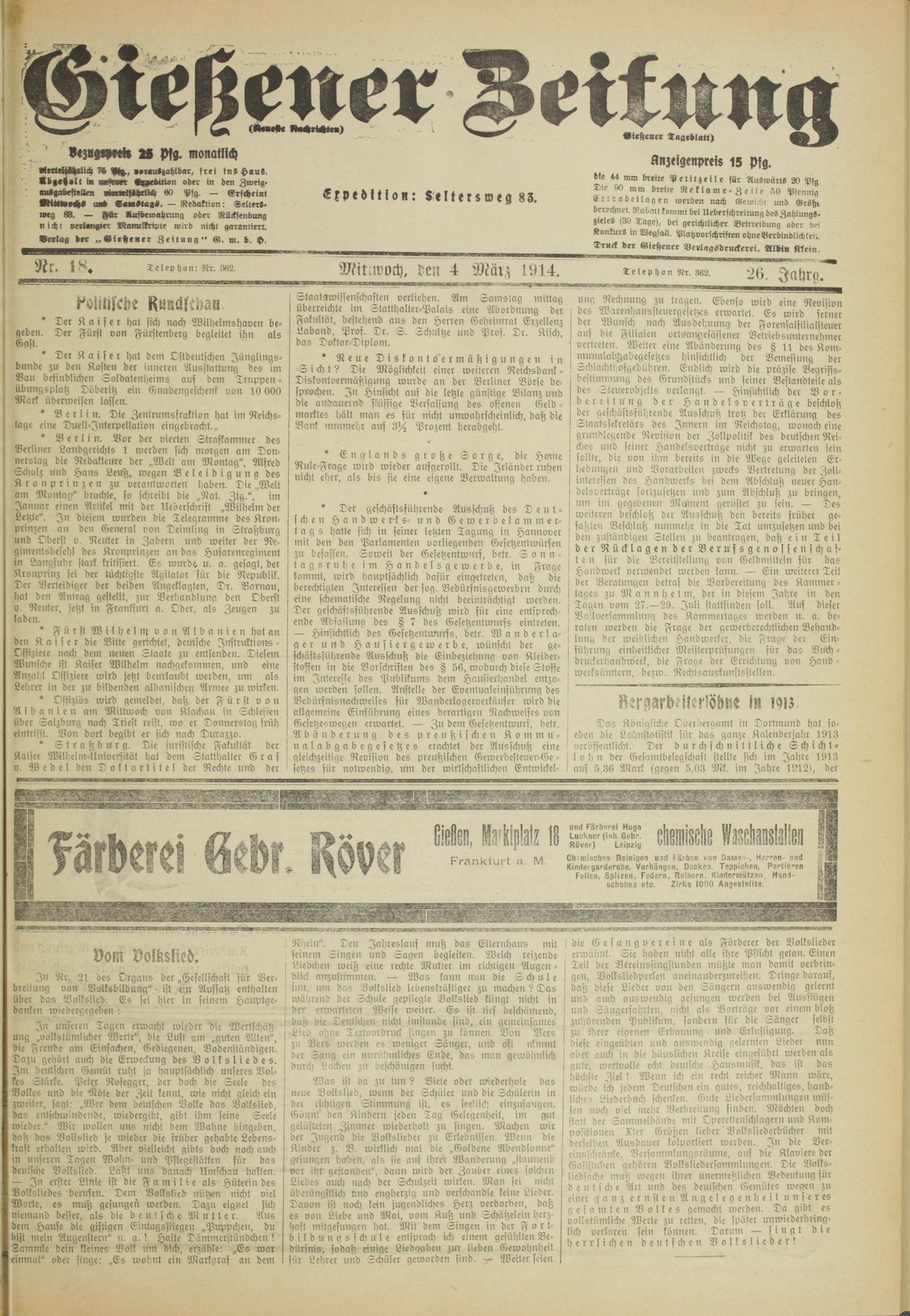 Gießener Zeitung. 1914-1918