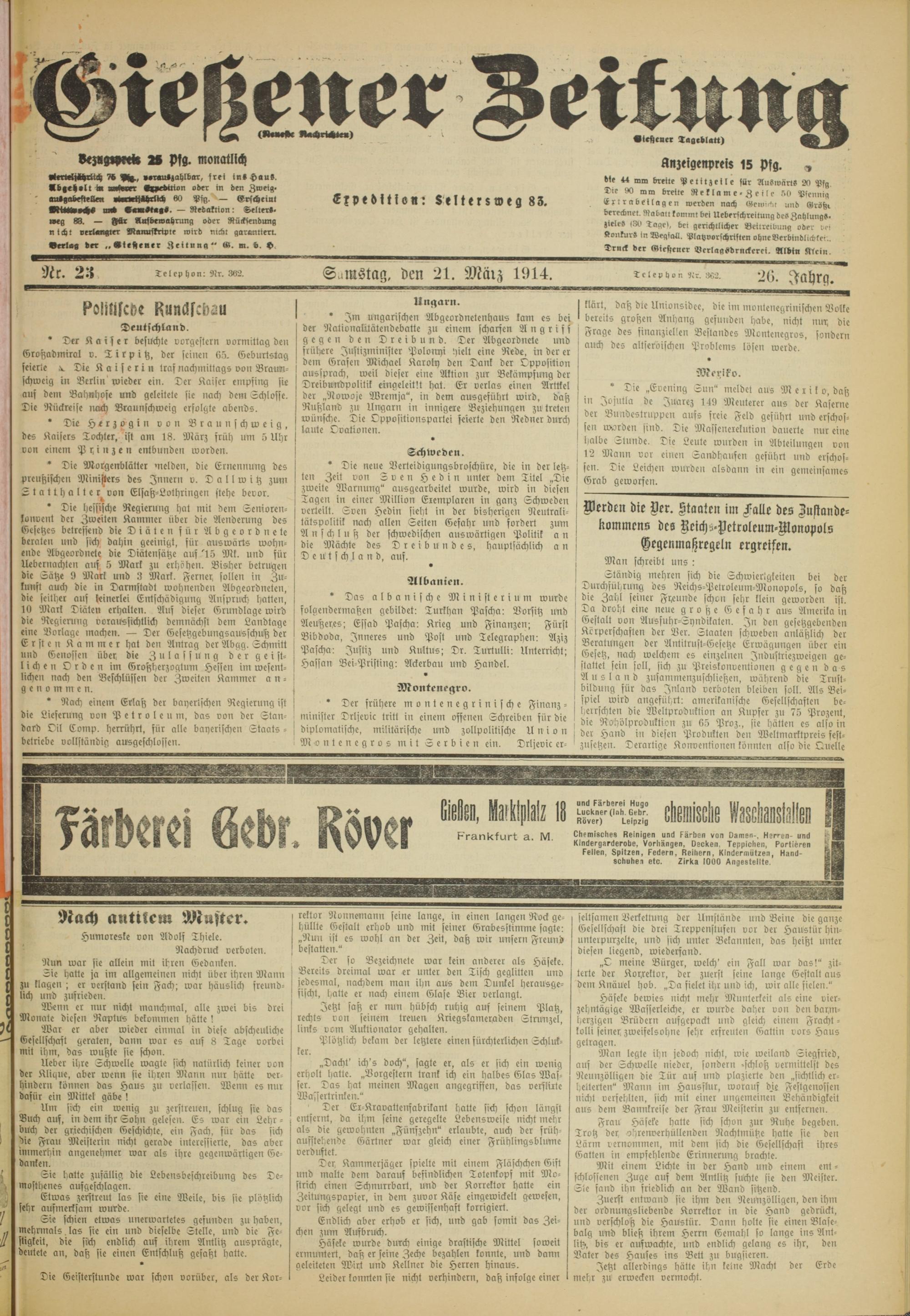 Gießener Zeitung. 1914-1918