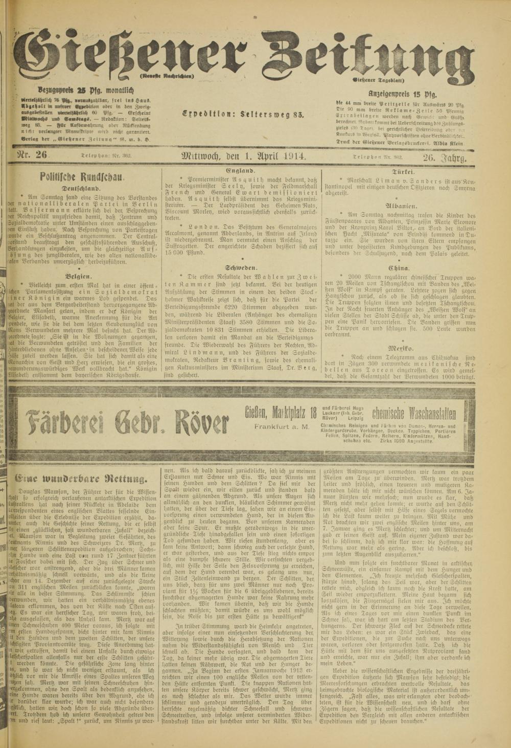 Gießener Zeitung. 1914-1918