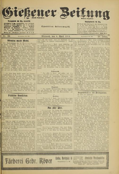 Gießener Zeitung. 1914-1918