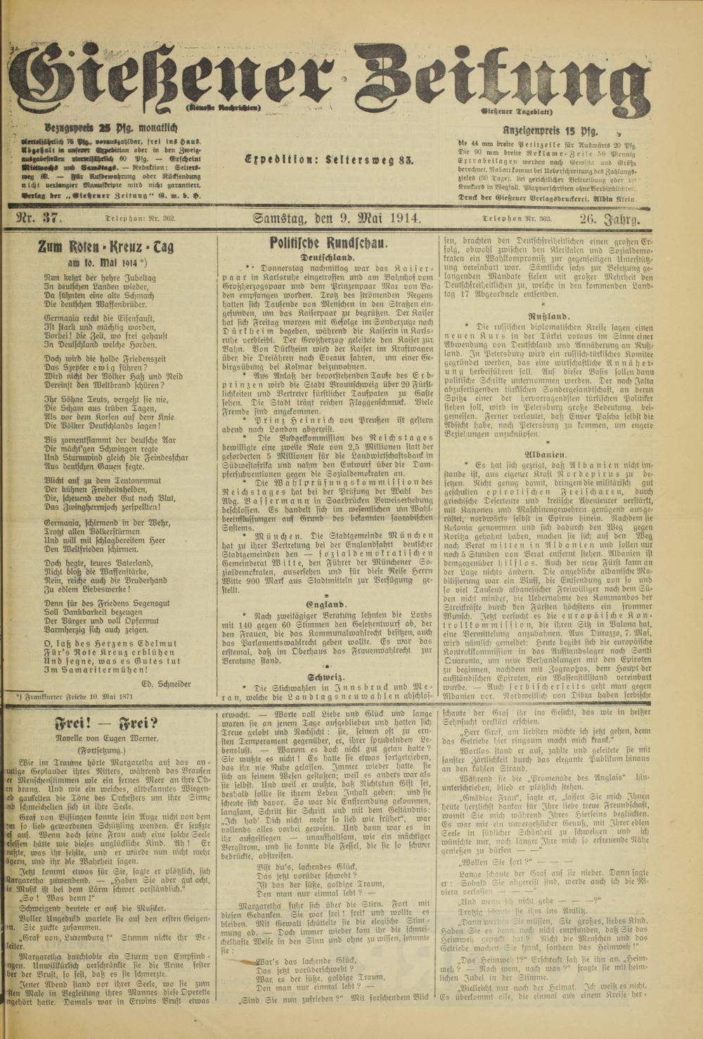 Gießener Zeitung. 1914-1918