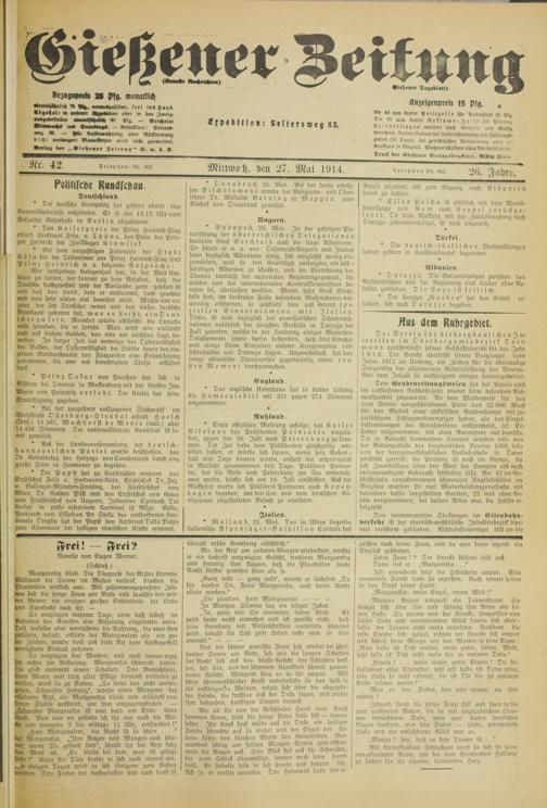 Gießener Zeitung. 1914-1918