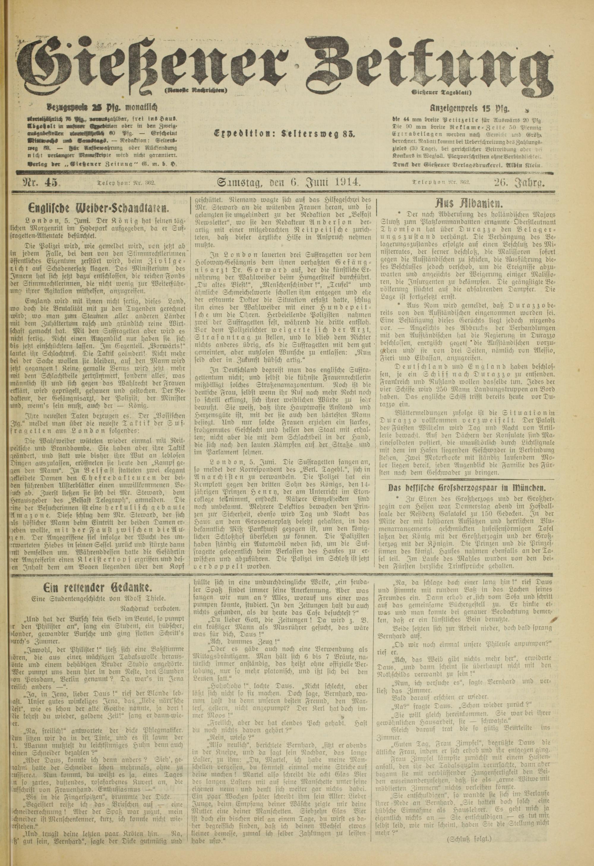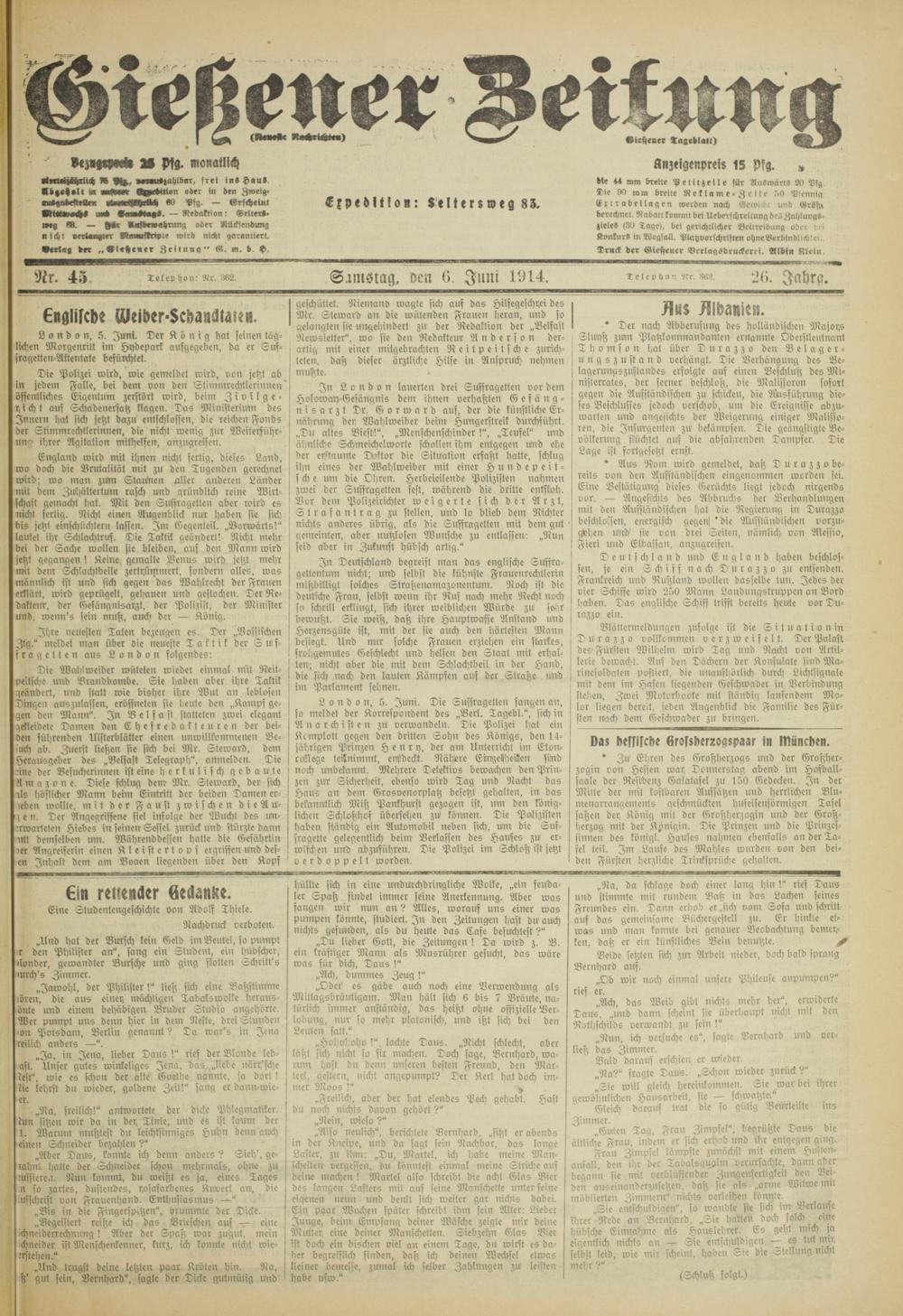 Gießener Zeitung. 1914-1918
