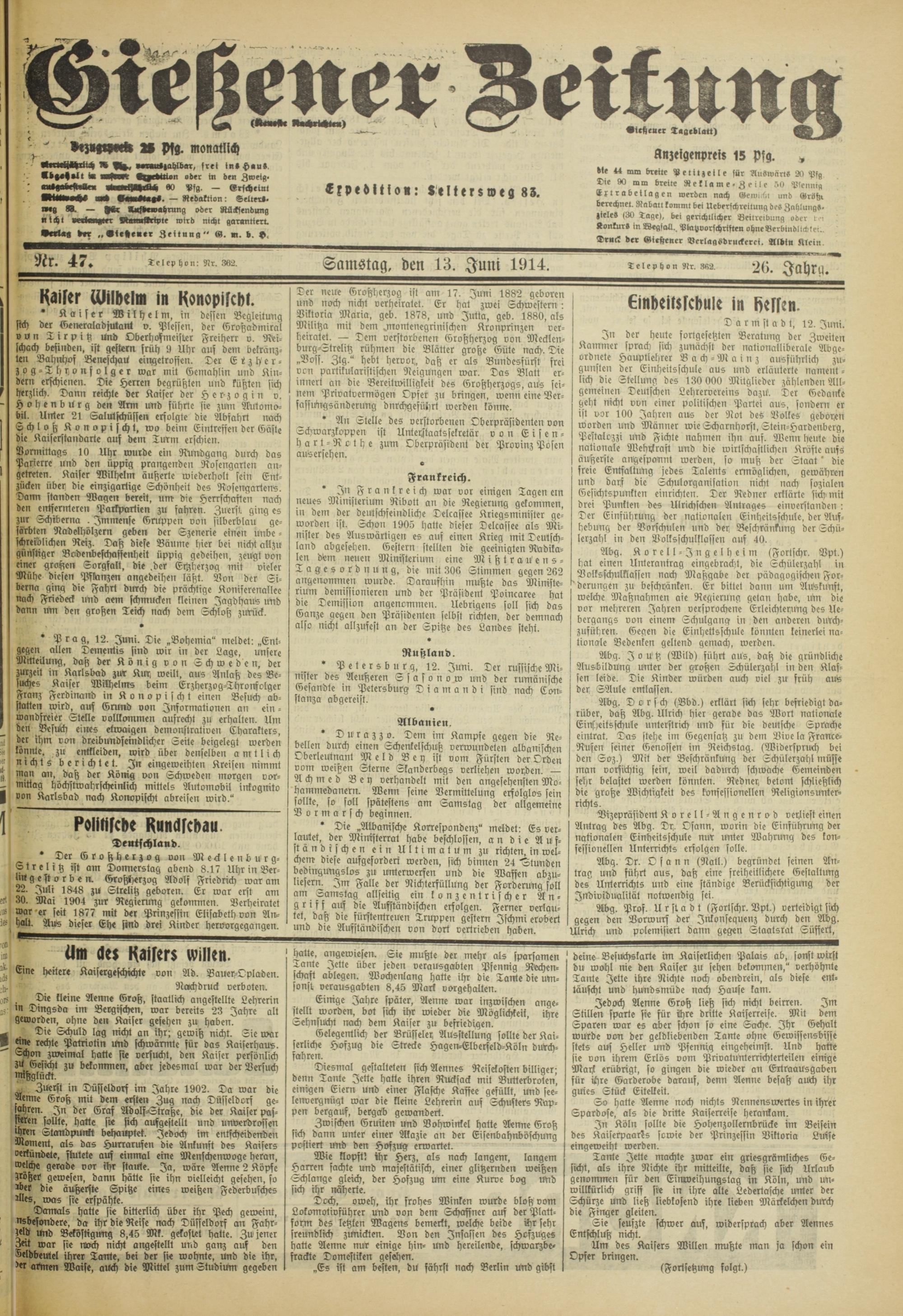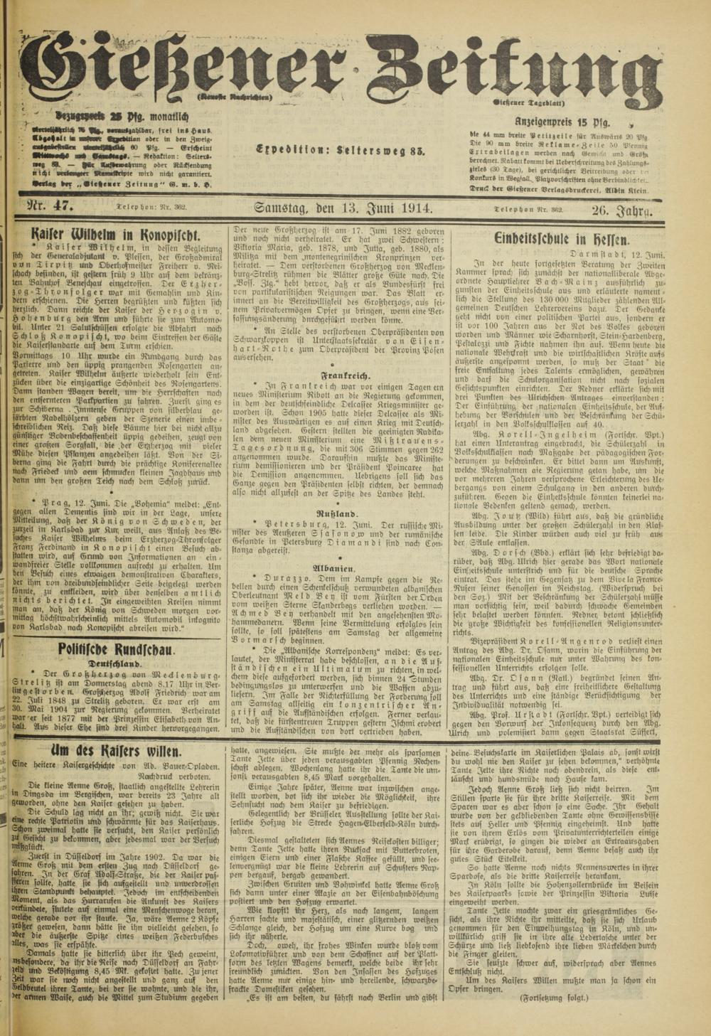 Gießener Zeitung. 1914-1918