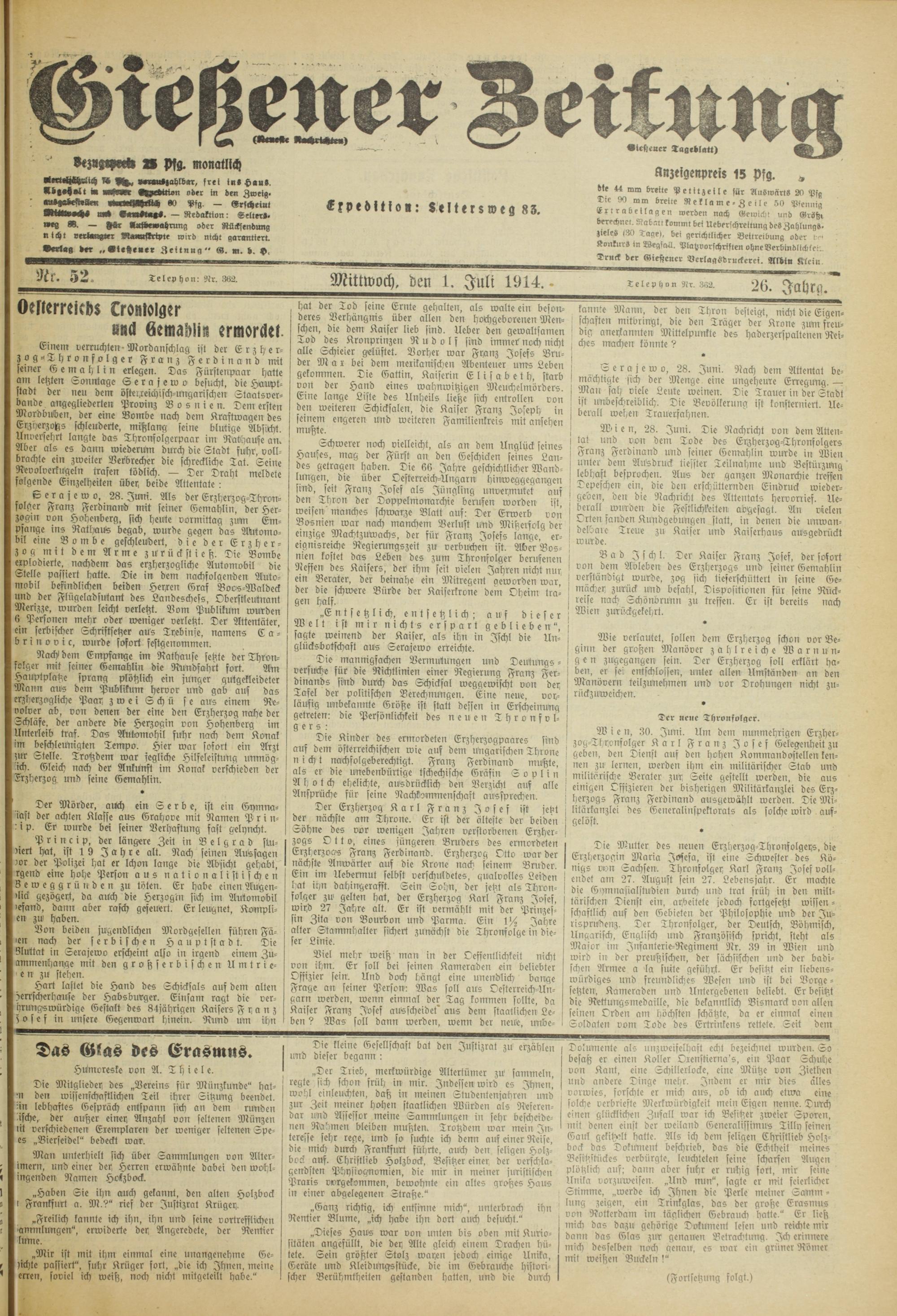 Gießener Zeitung. 1914-1918