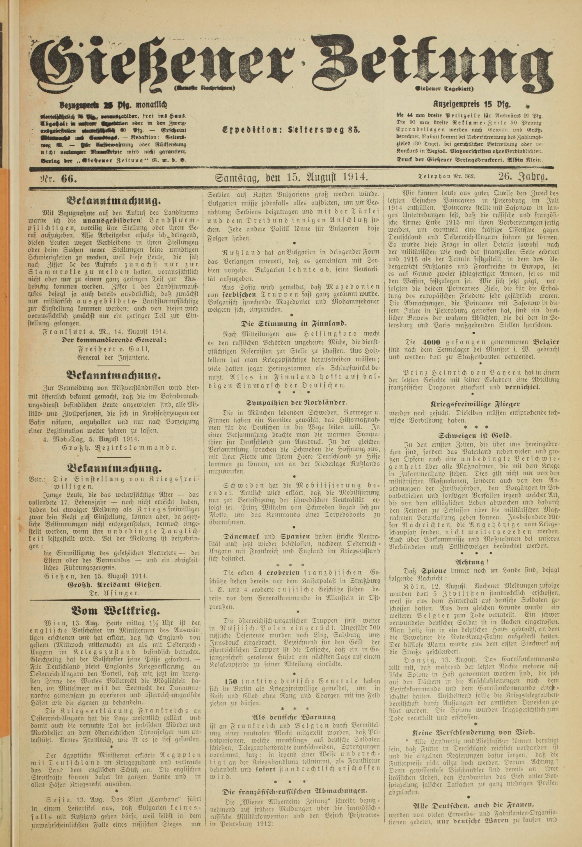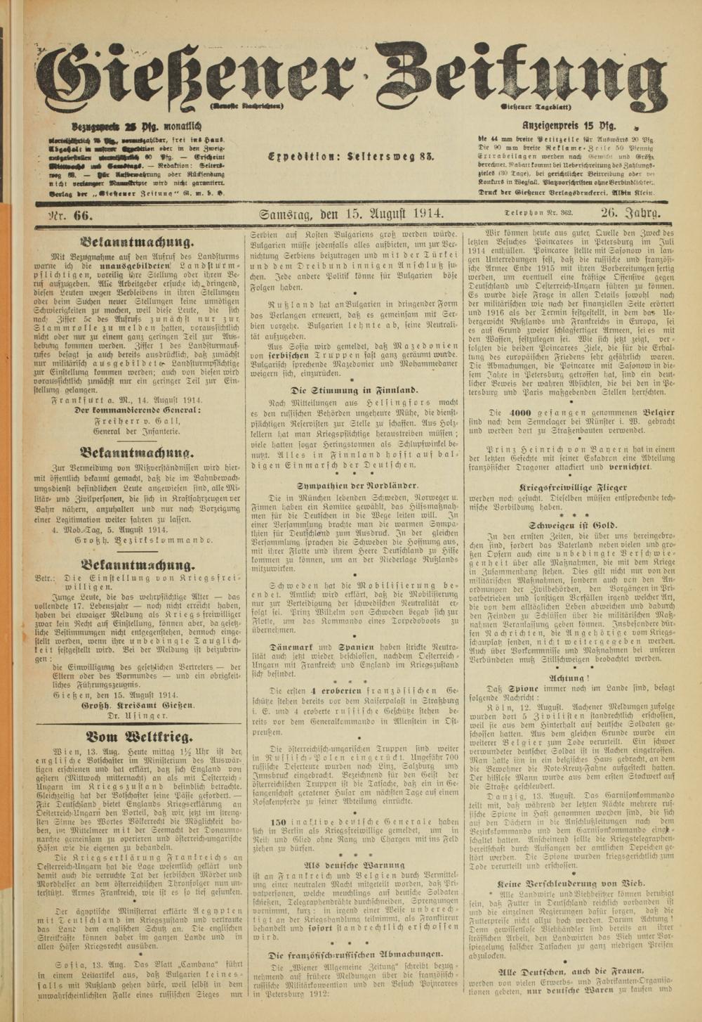 Gießener Zeitung. 1914-1918
