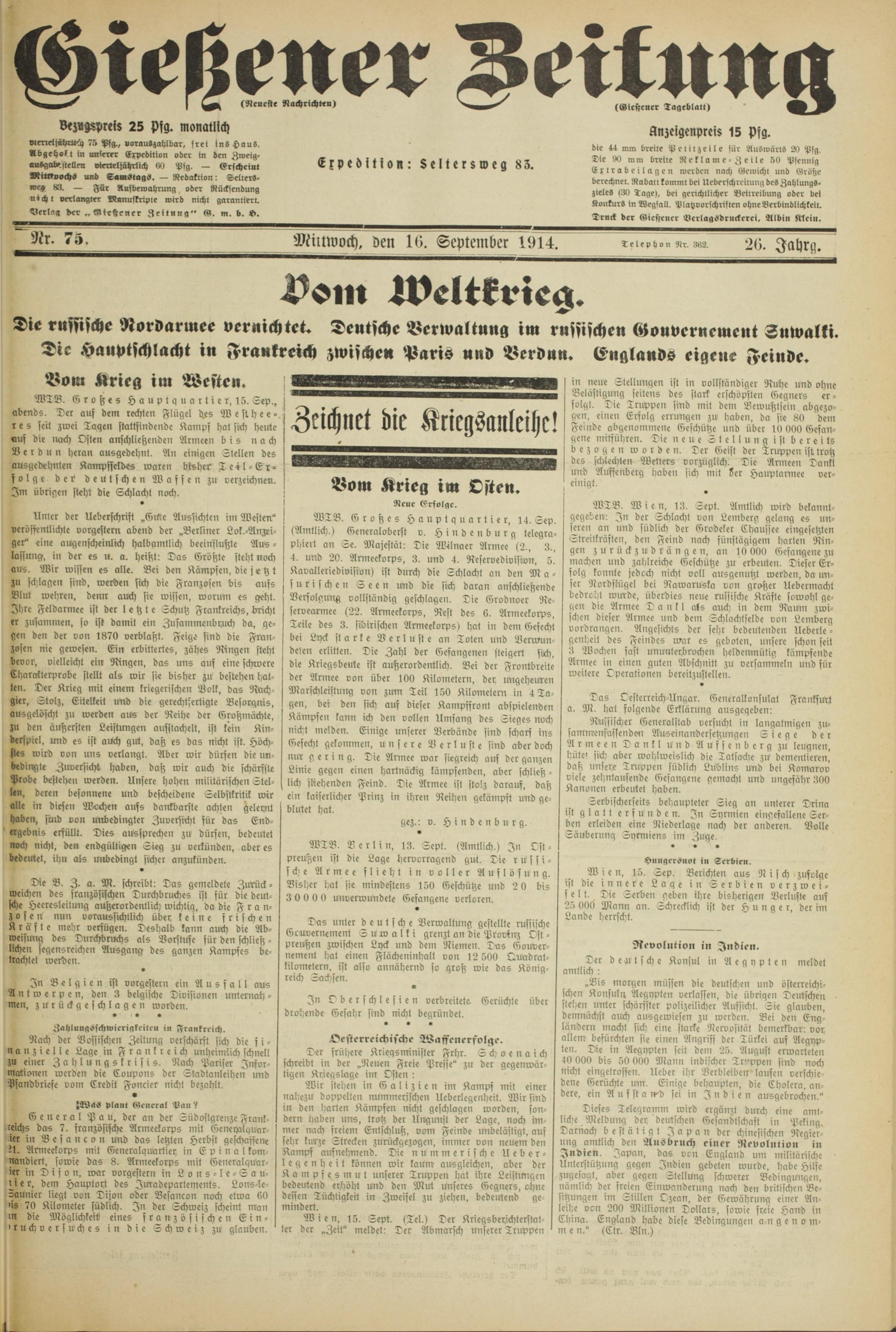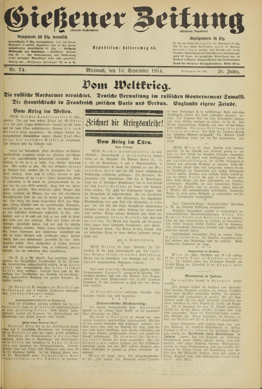 Gießener Zeitung. 1914-1918