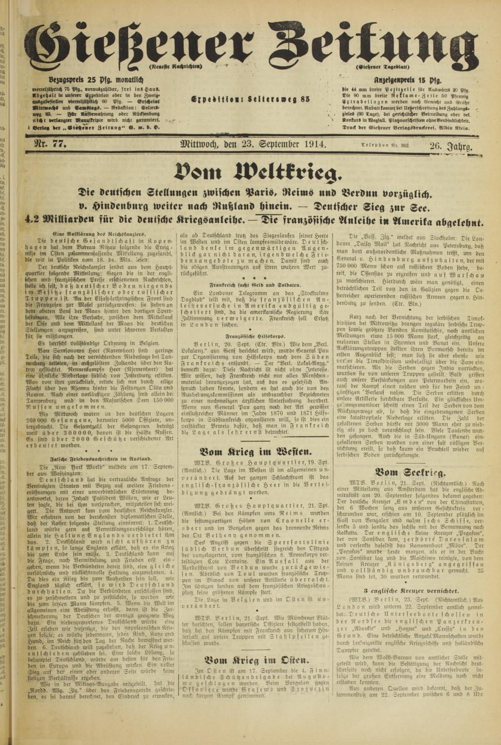 Gießener Zeitung. 1914-1918