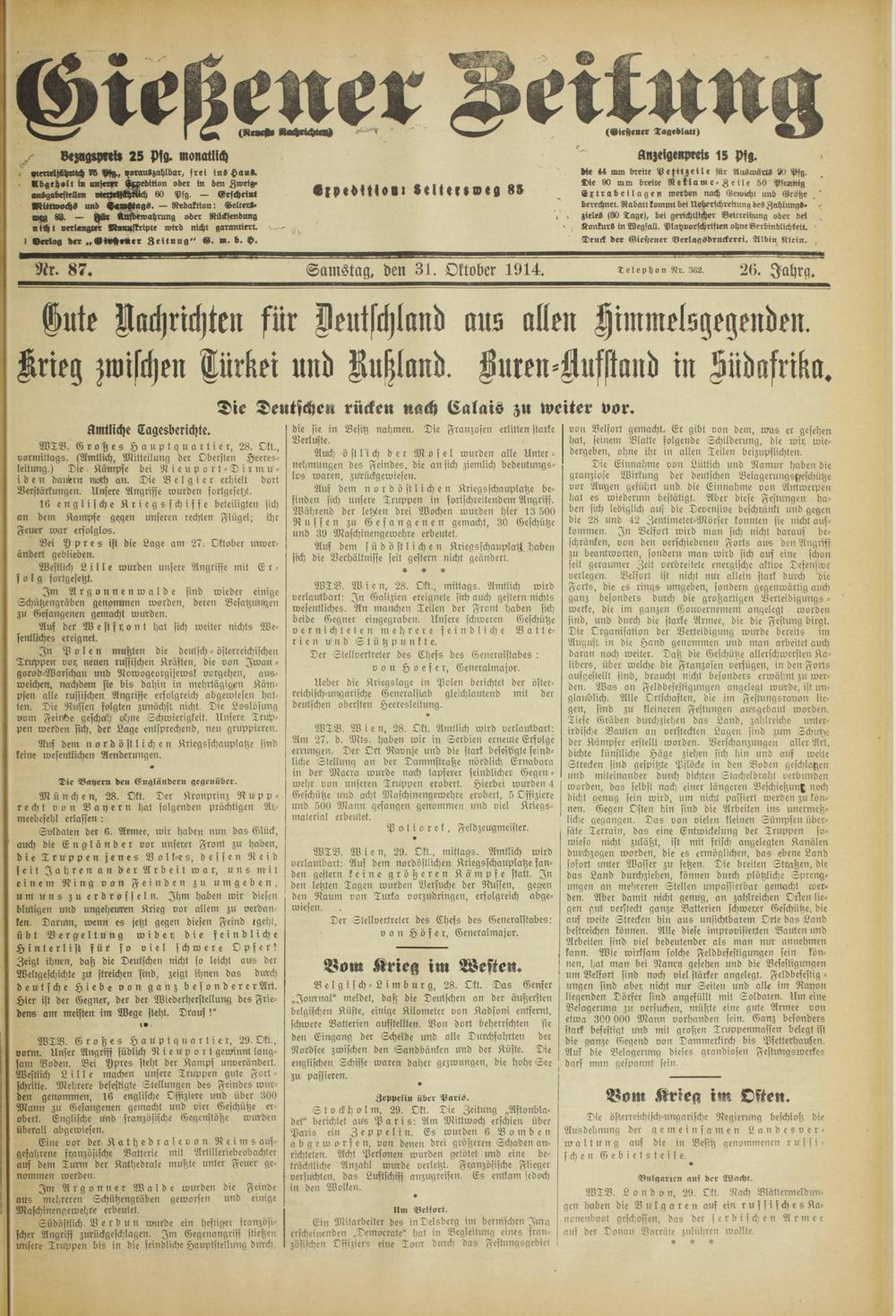 Gießener Zeitung. 1914-1918