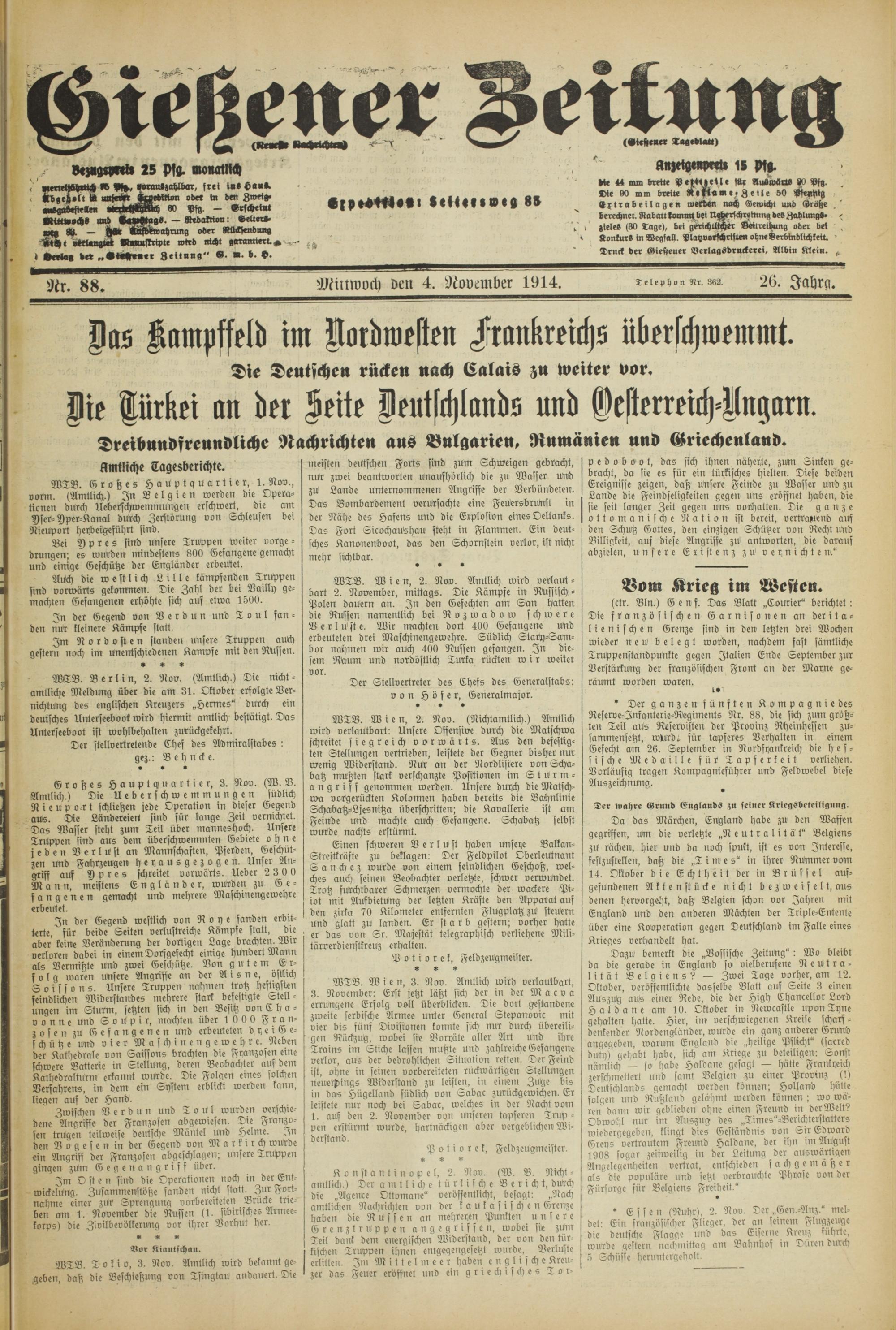 Gießener Zeitung. 1914-1918