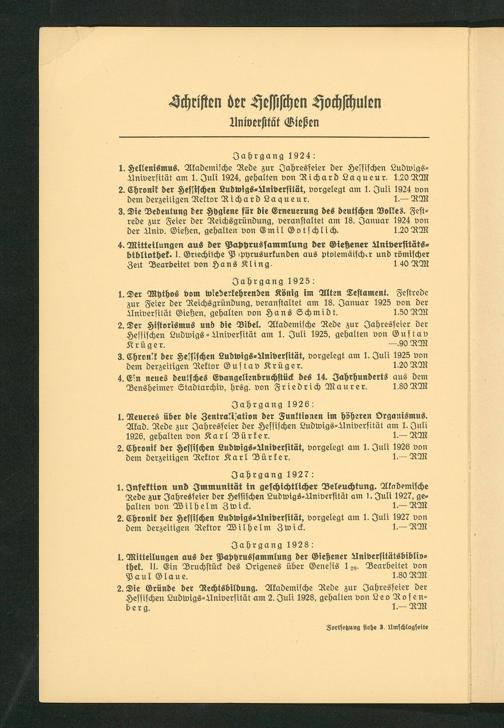 Schriften der Ludwigs-Universität zu Gießen. 1939-1941