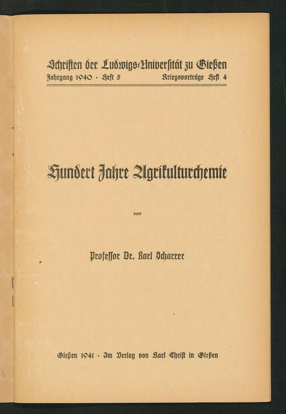 Schriften der Ludwigs-Universität zu Gießen. 1939-1941