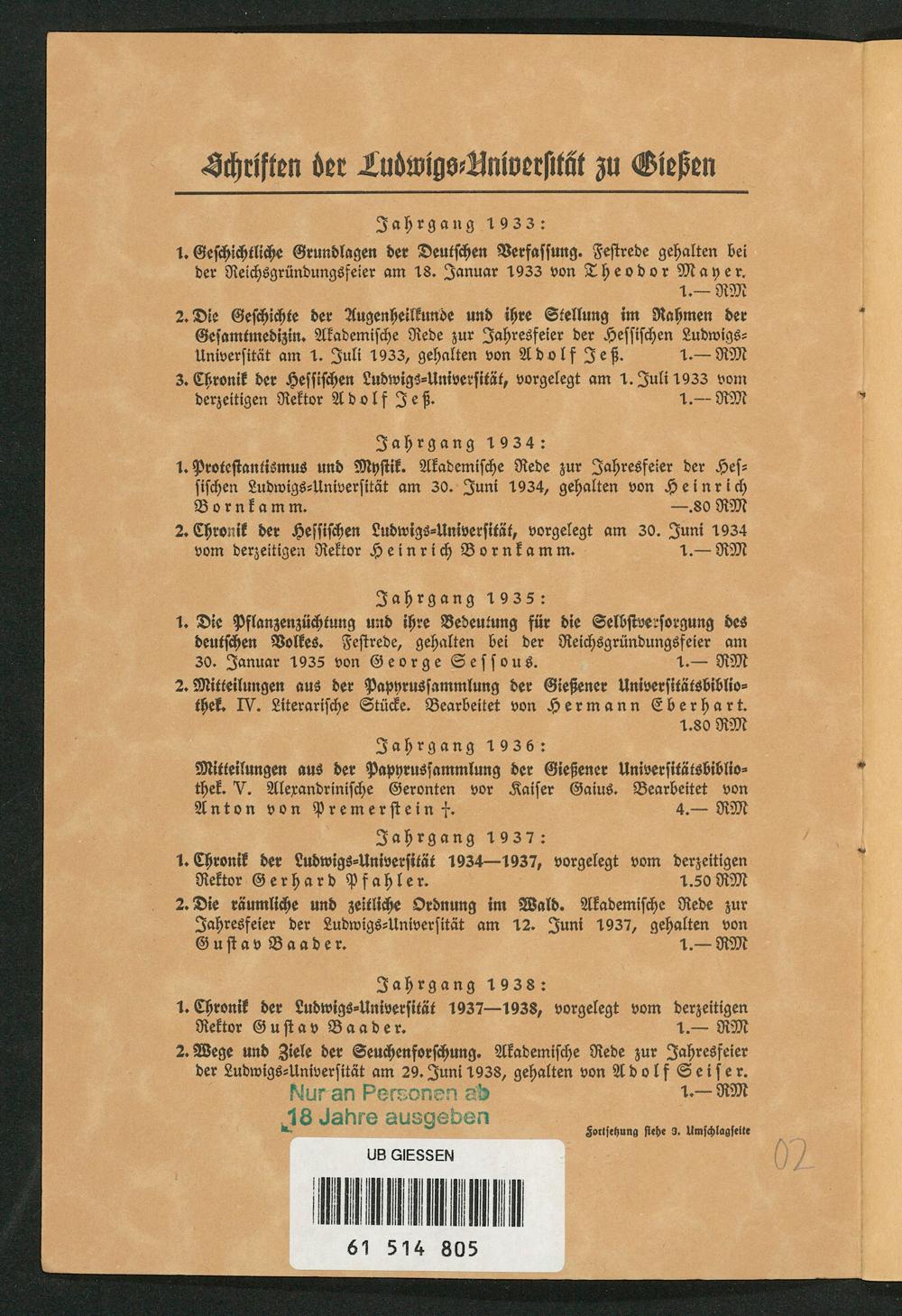 Schriften der Ludwigs-Universität zu Gießen. 1939-1941