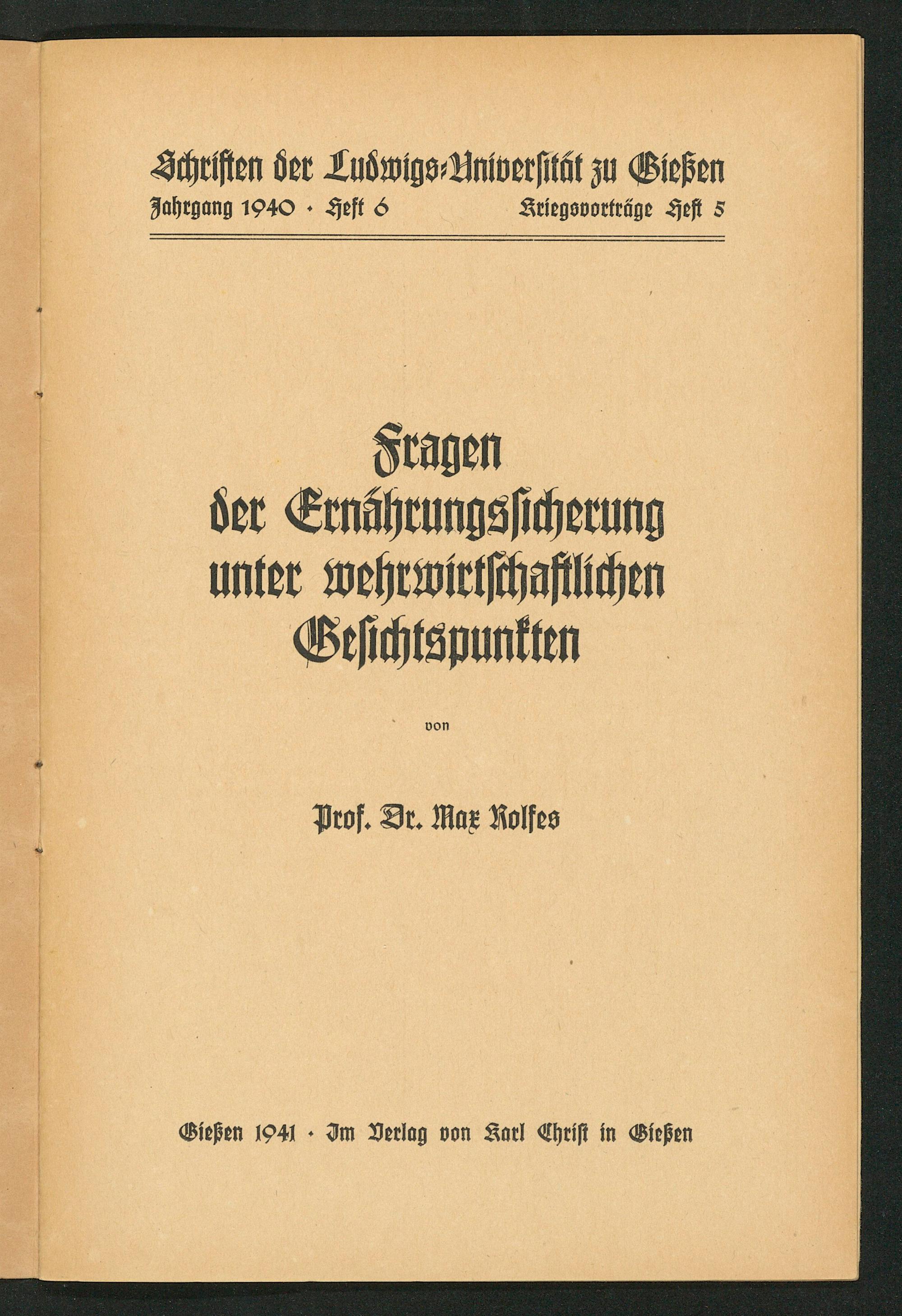 Schriften der Ludwigs-Universität zu Gießen. 1939-1941