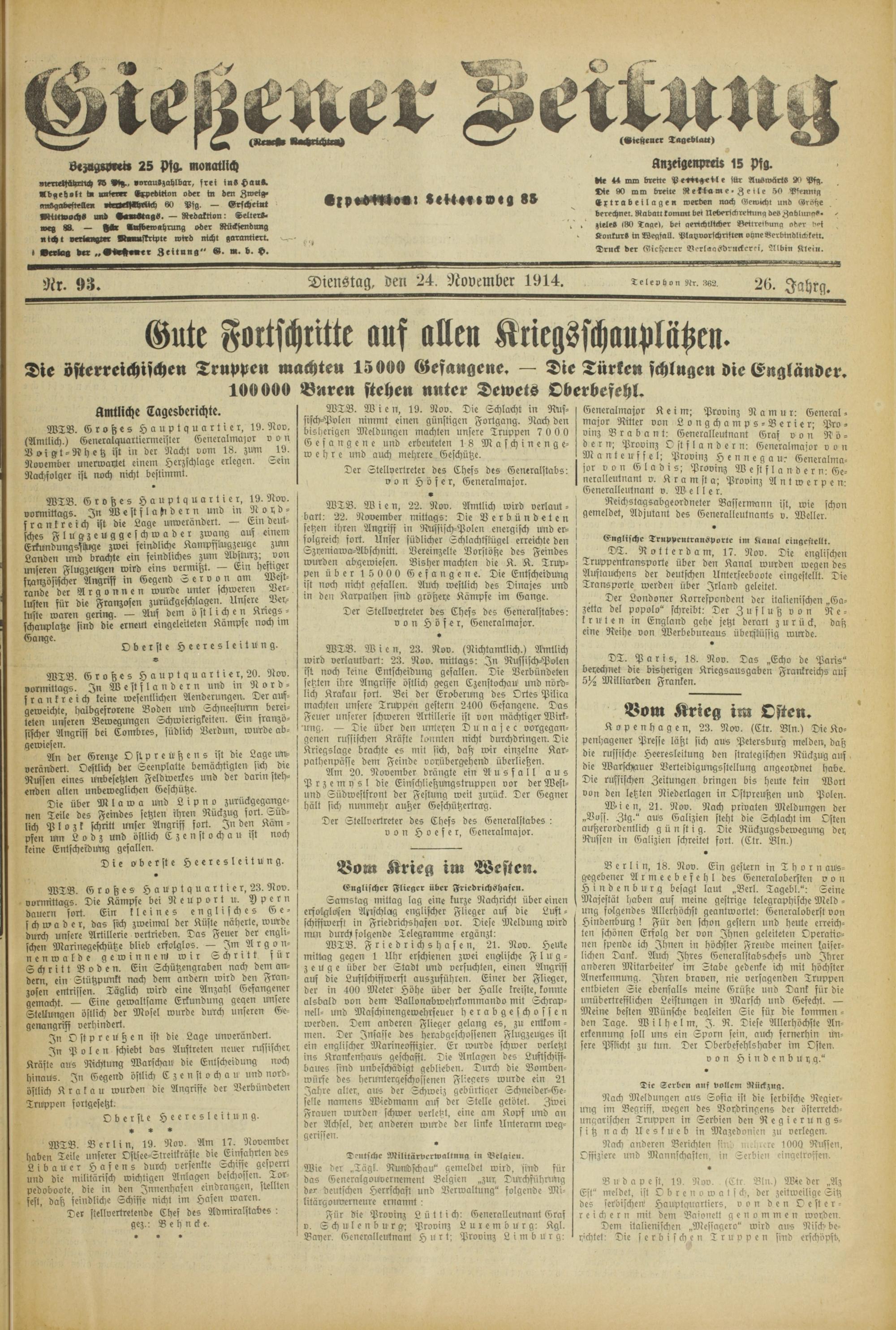 Gießener Zeitung. 1914-1918