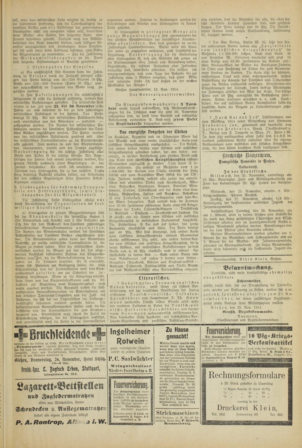 Gießener Zeitung. 1914-1918