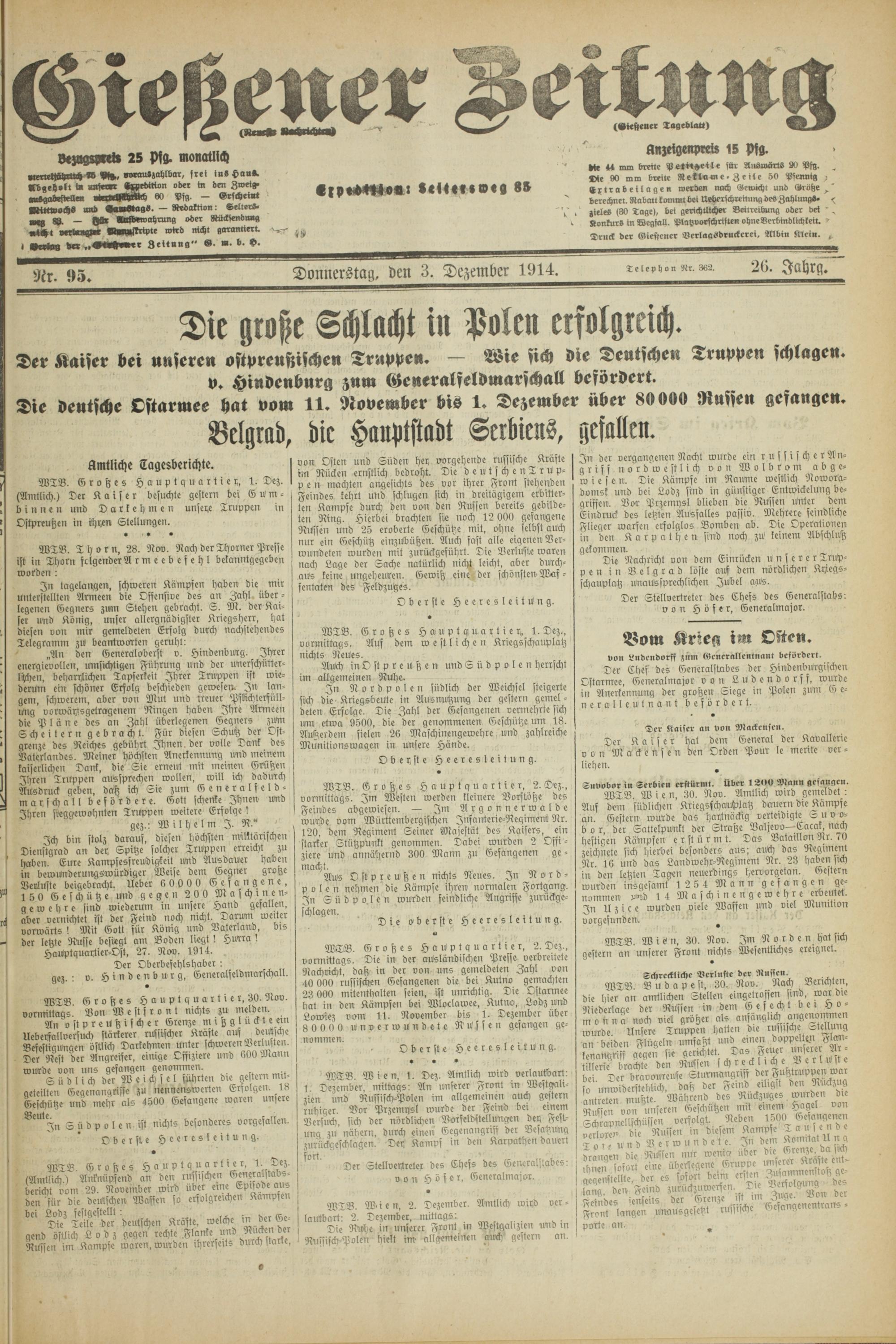 Gießener Zeitung. 1914-1918