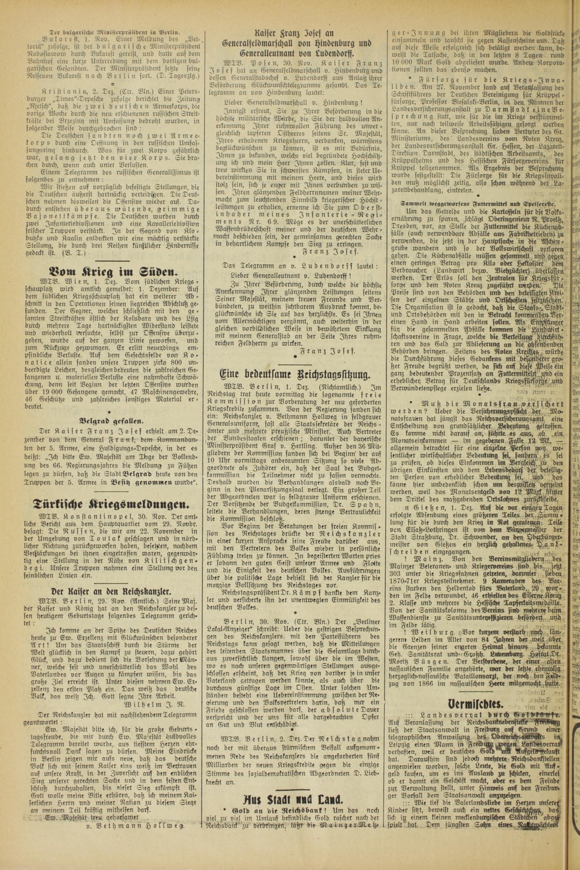 Gießener Zeitung. 1914-1918
