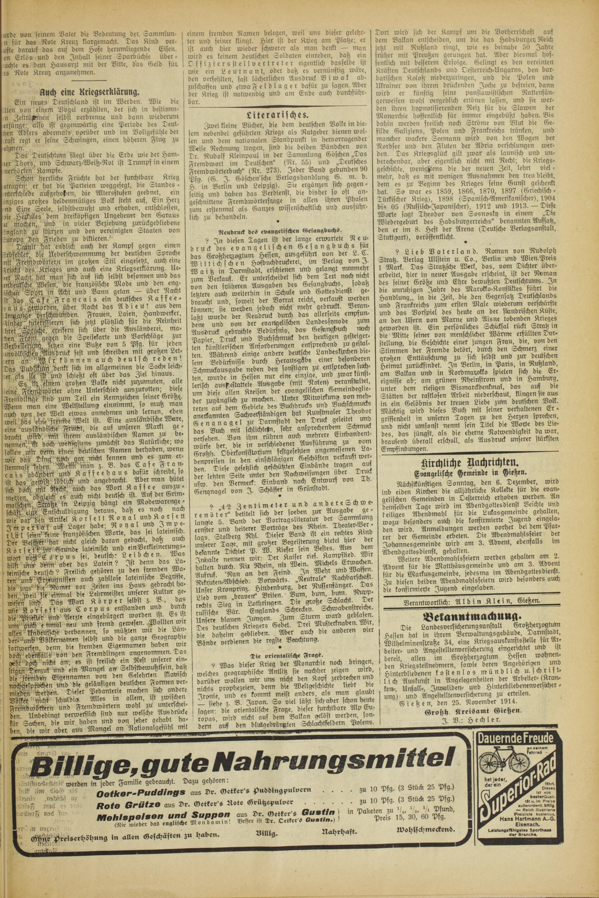 Gießener Zeitung. 1914-1918