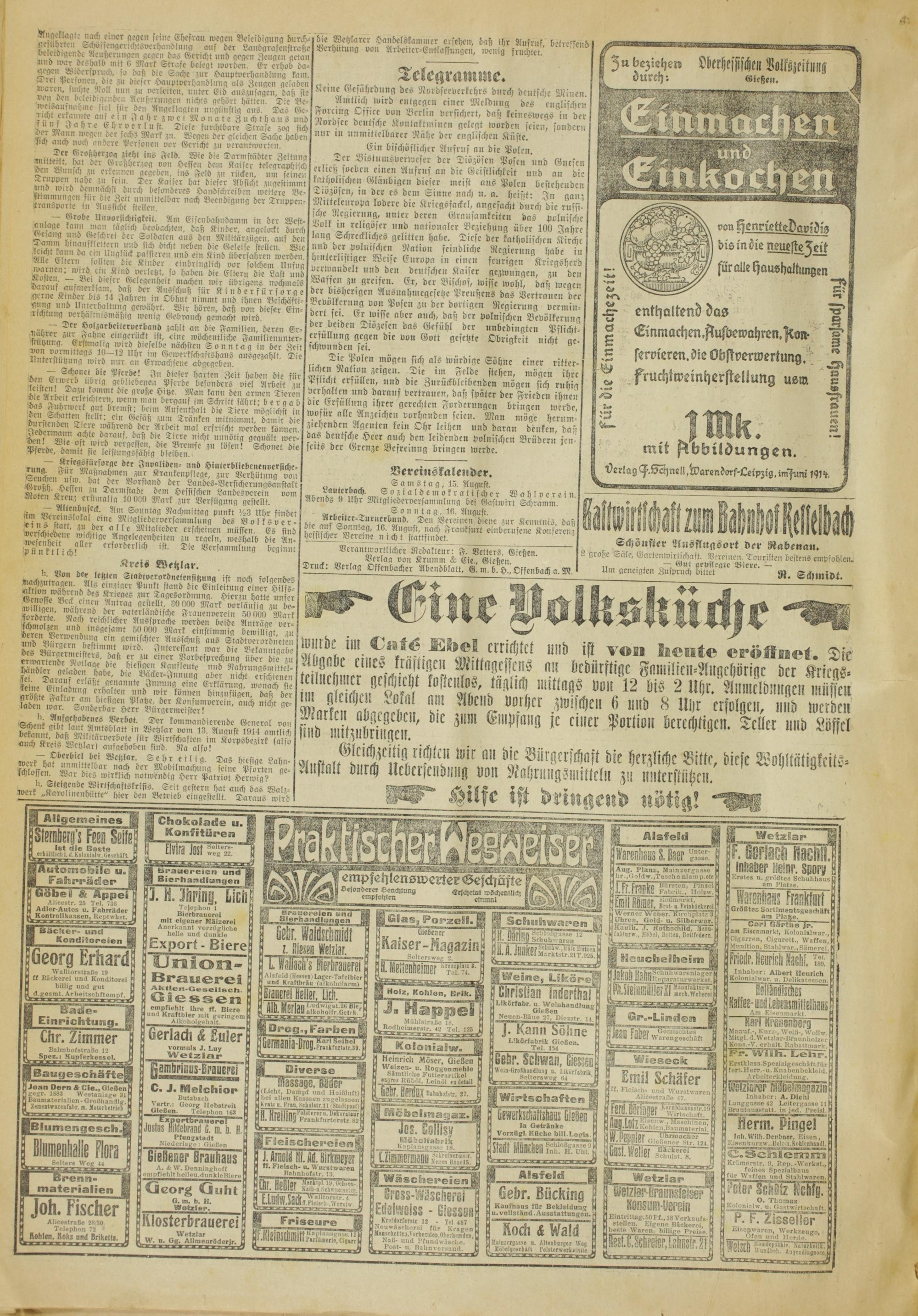 Oberhessische Volkszeitung. 1914-1923