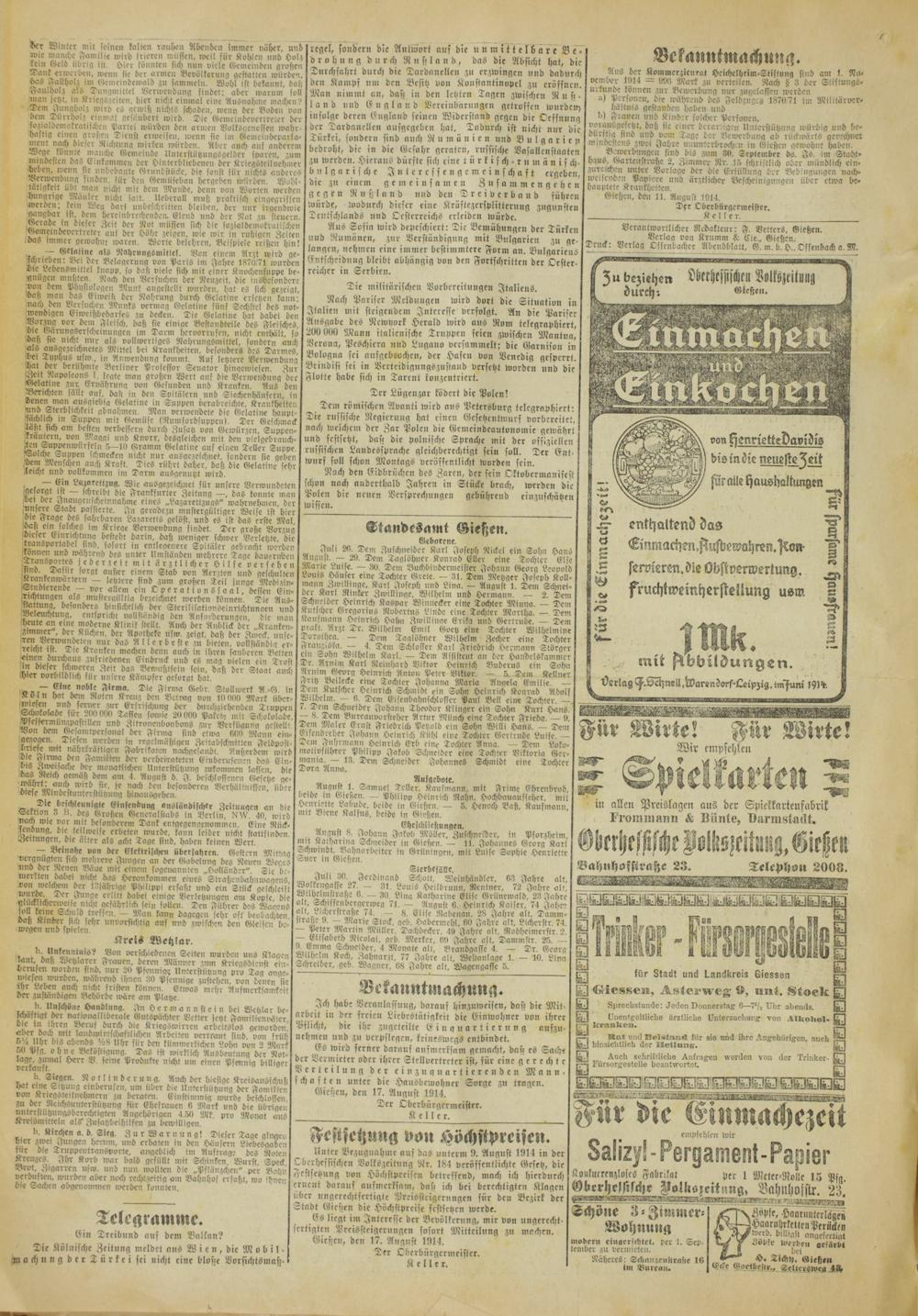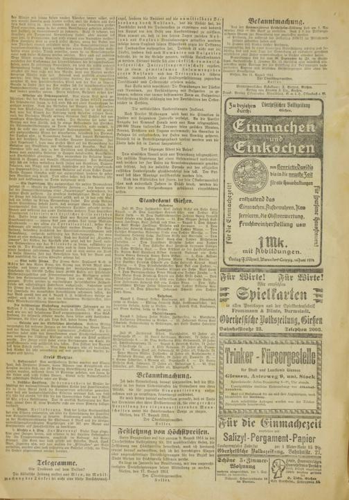 Oberhessische Volkszeitung. 1914-1923