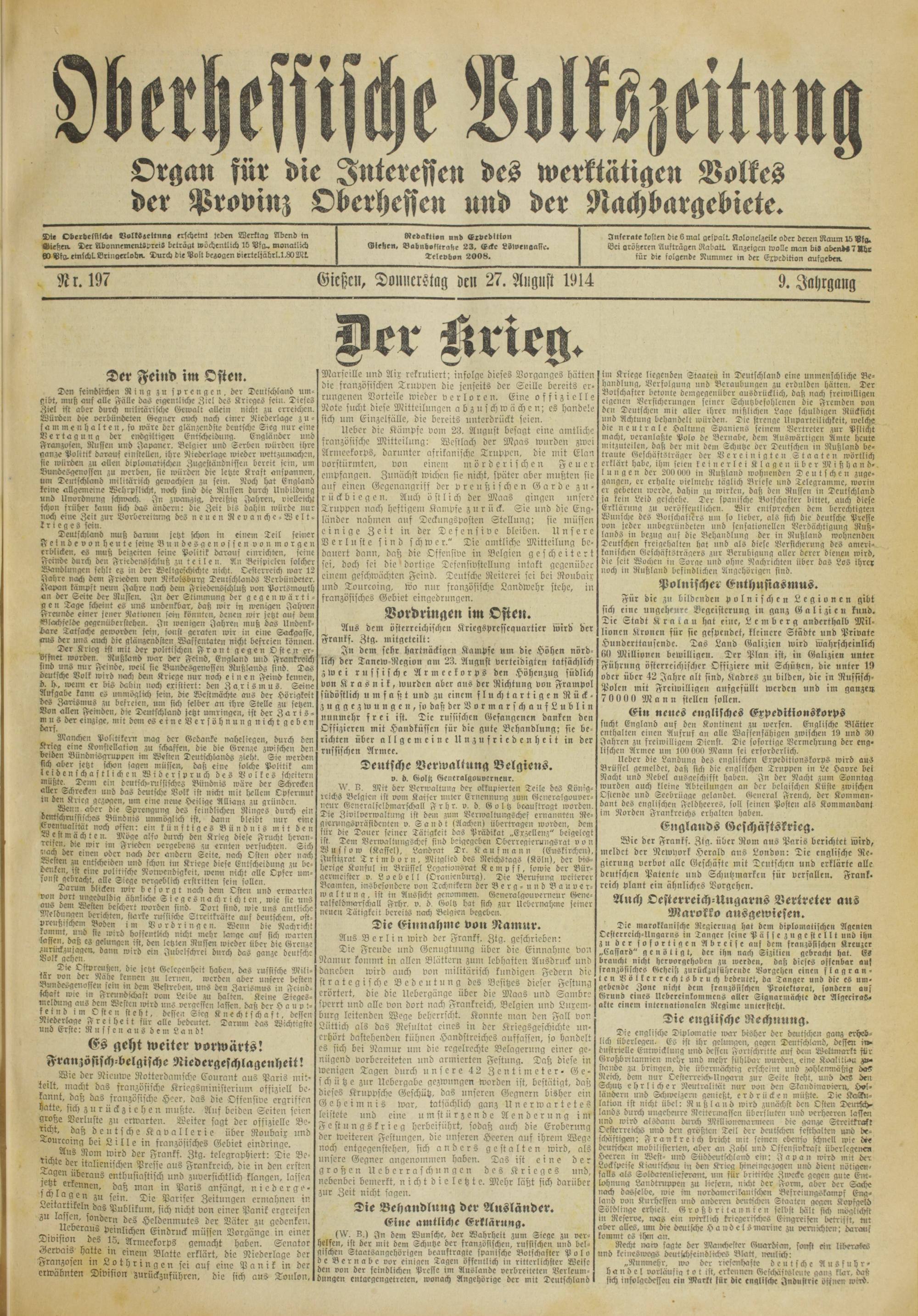 Oberhessische Volkszeitung. 1914-1923