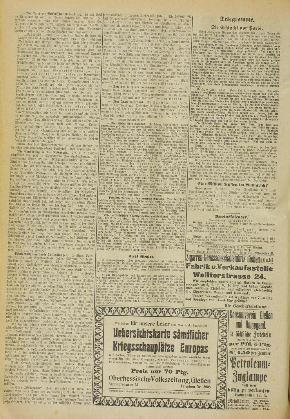 Oberhessische Volkszeitung. 1914-1923