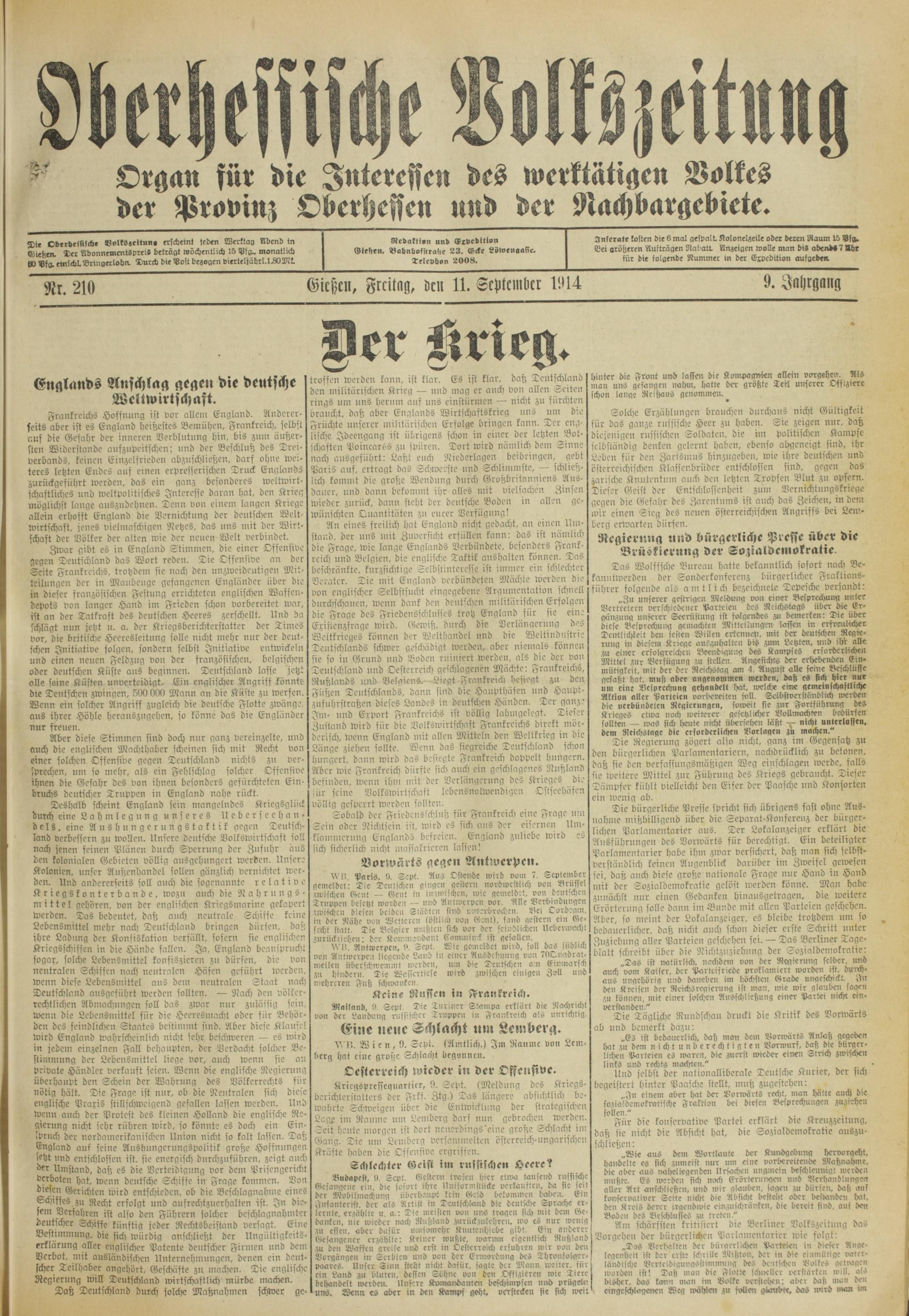 Oberhessische Volkszeitung. 1914-1923