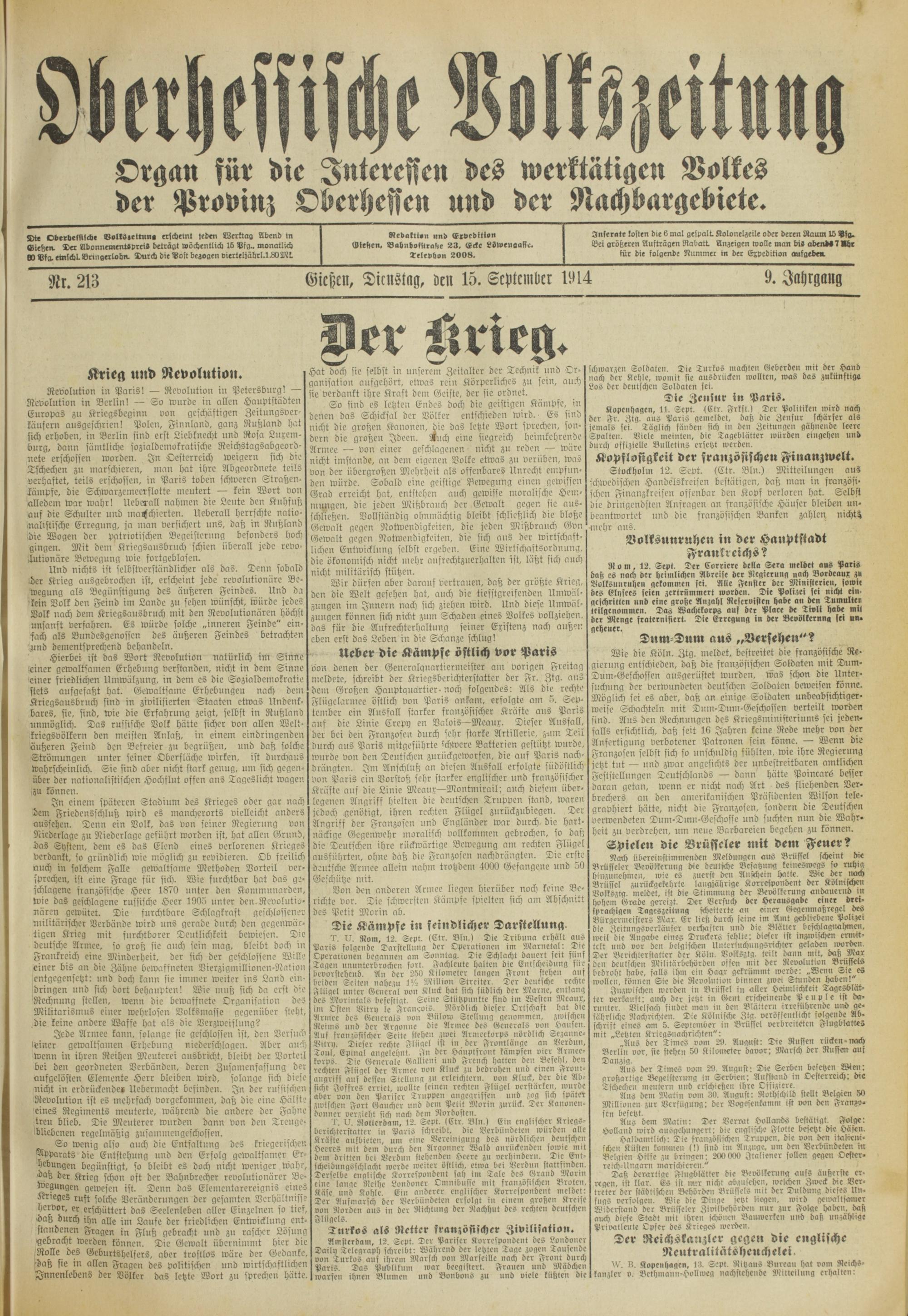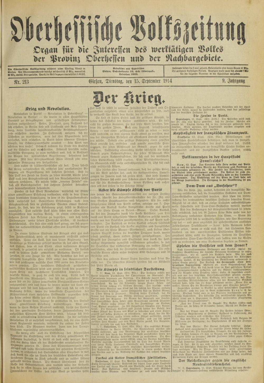Oberhessische Volkszeitung. 1914-1923