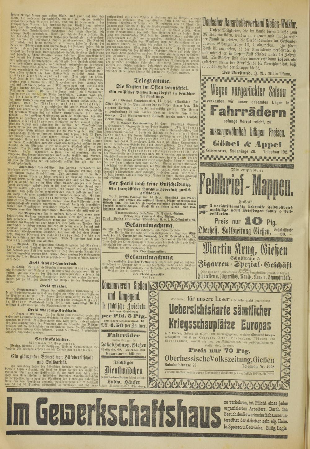 Oberhessische Volkszeitung. 1914-1923