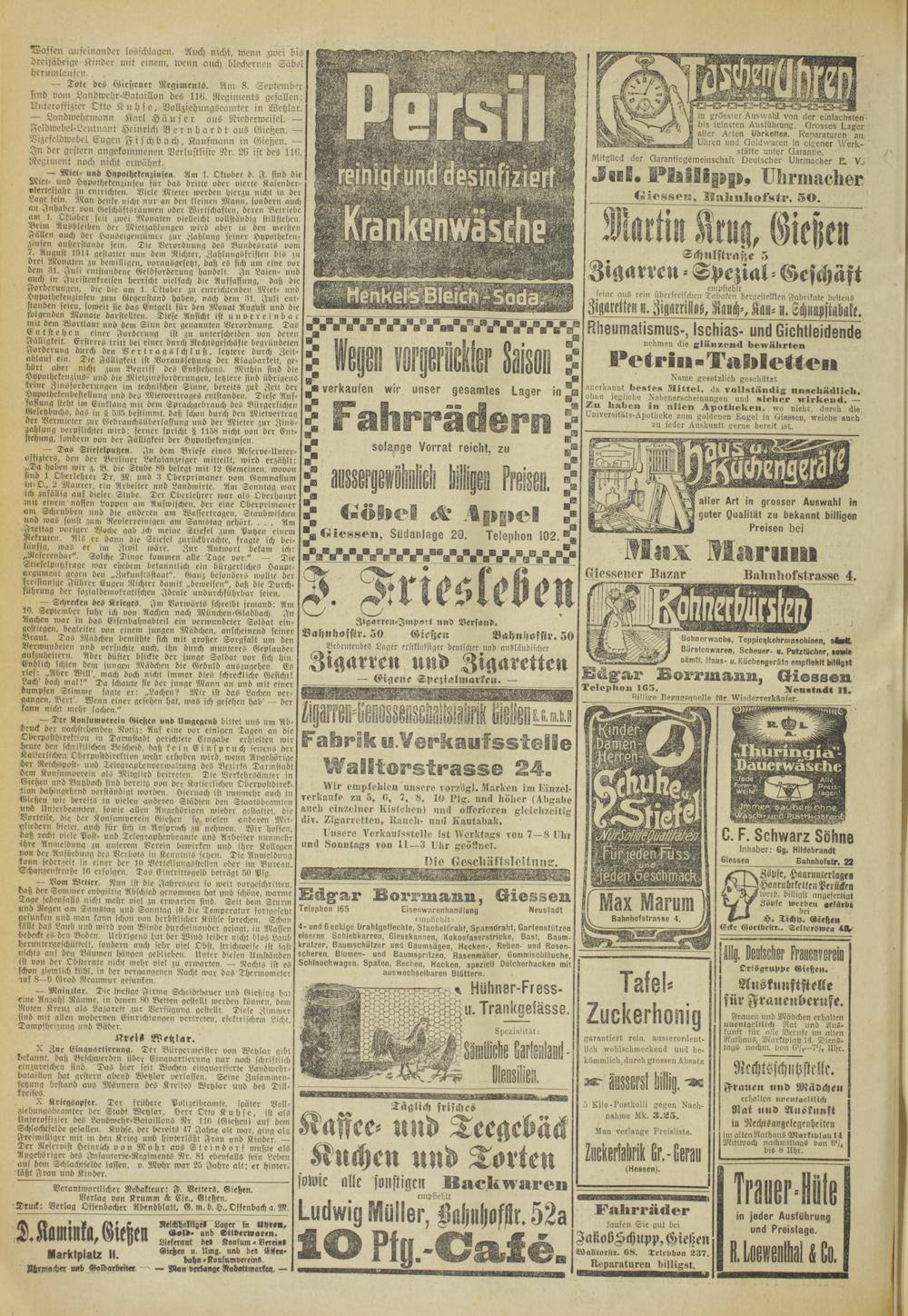 Oberhessische Volkszeitung. 1914-1923